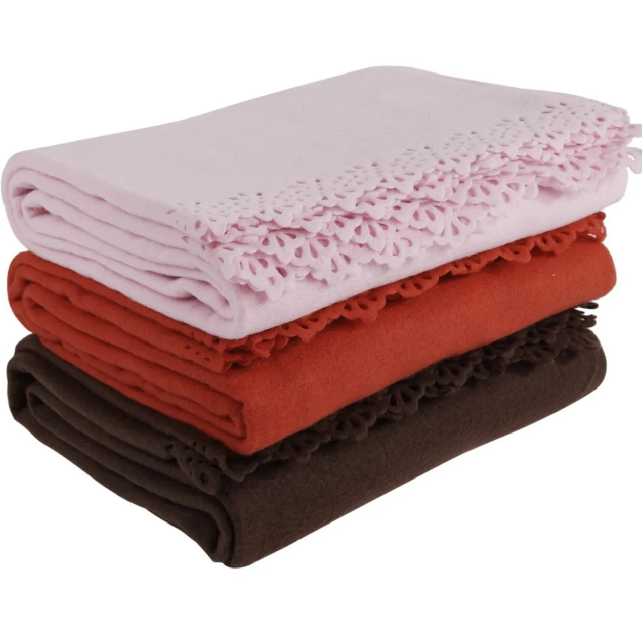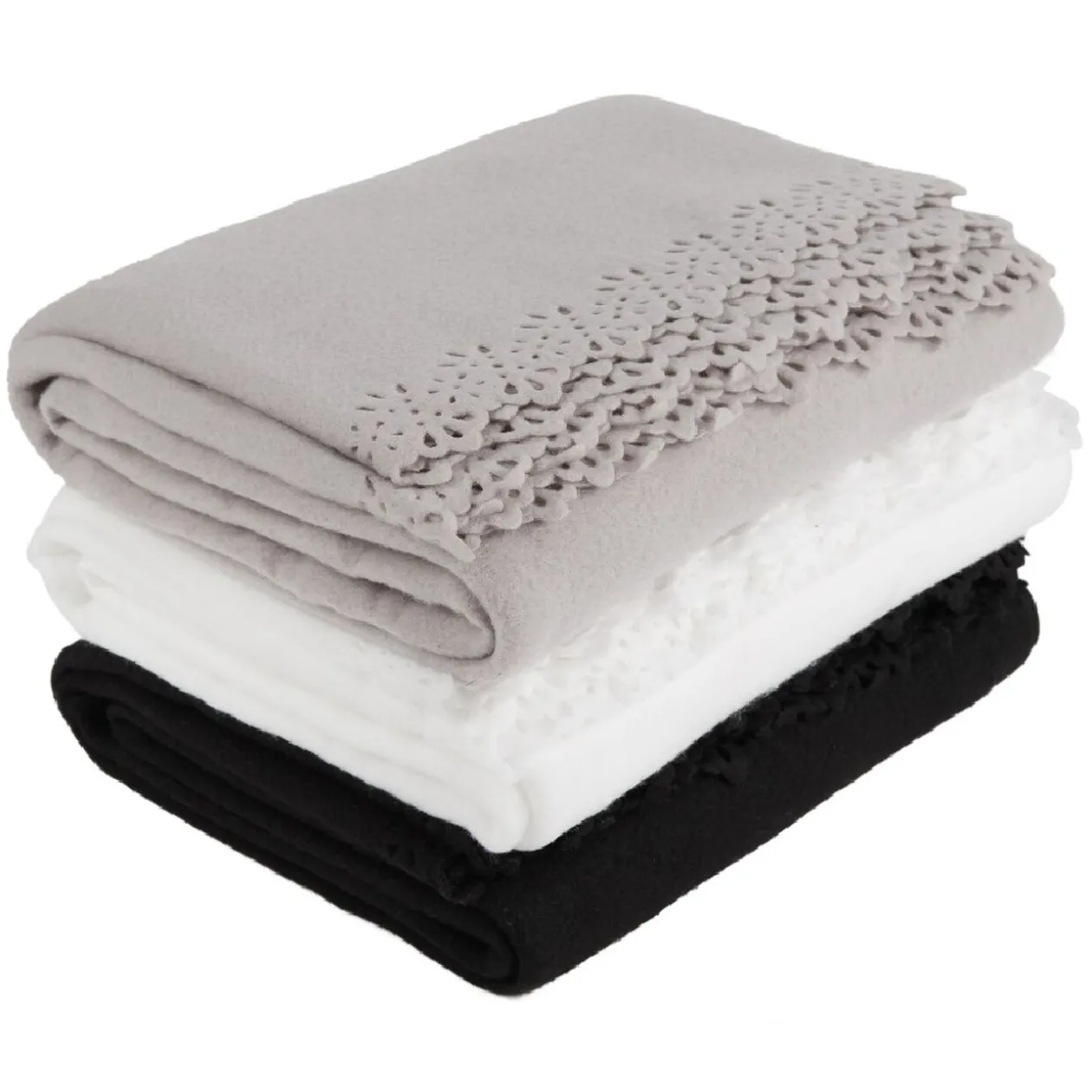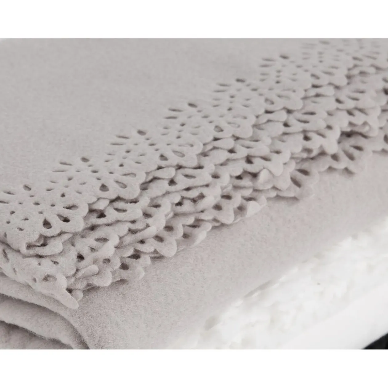 Plaid déco réversible gris bordure rose motif arabesque doux