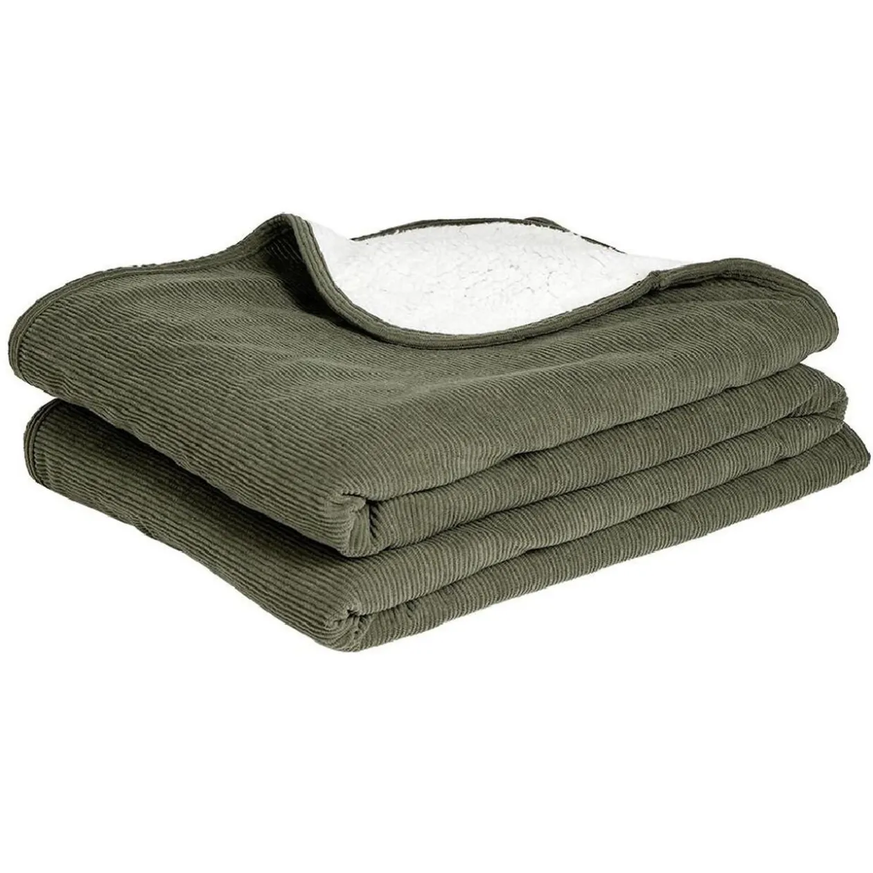 Avec sa doublire sherpa, ce plaid côtelé vert saura habiller avec style votre canapé ou lit durant les mois d’hiver.