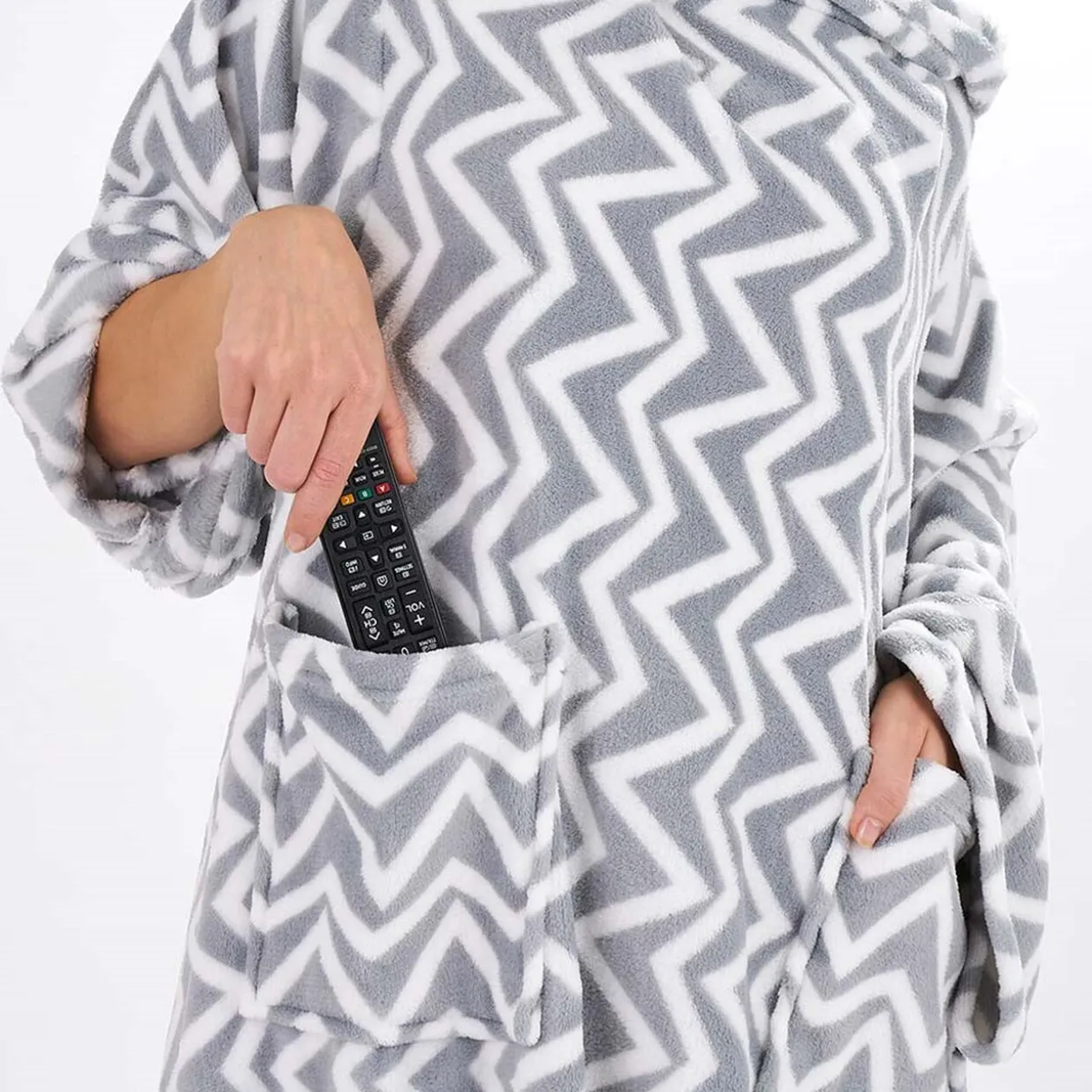 Ce produit est à motif – Dimensions : L140 x P130 cm – Matière : PolyesterUn plaid idéal pour le canapé, des manches permettent de bouger sans se découvrir – Une poche est à l’extrémité pour caler vos pieds et les garder au chaud – Doux et moelleux pour plus de confort