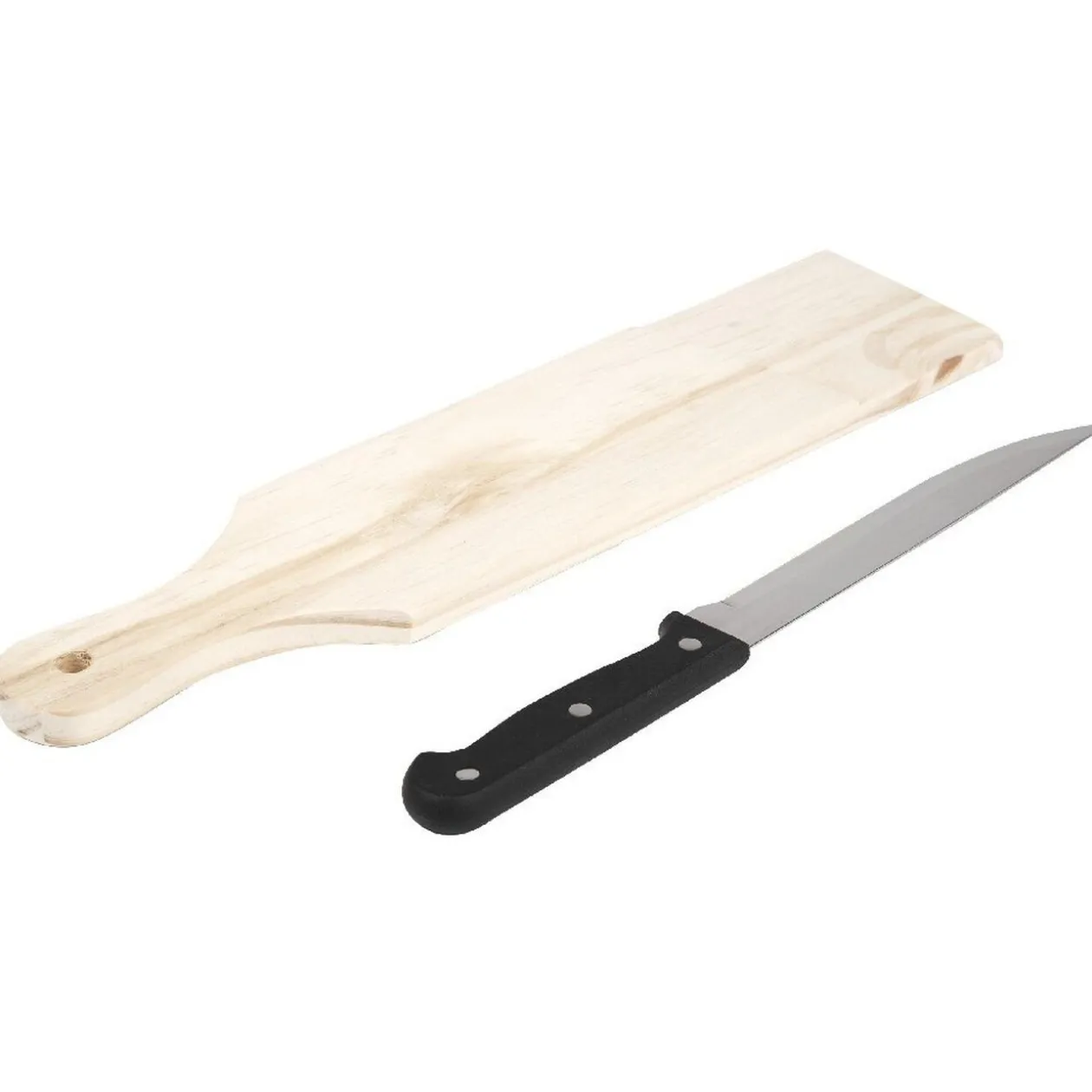 Planche à découper en pin avec couteau de découpe. Idéal pour le saucisson, les légumes…