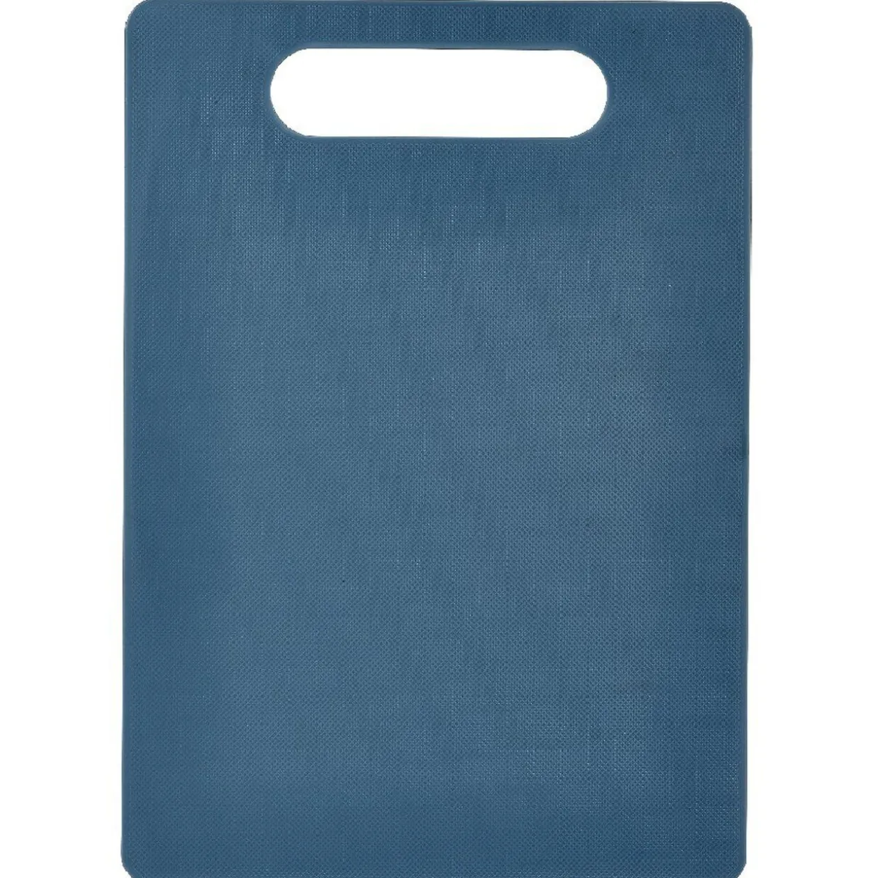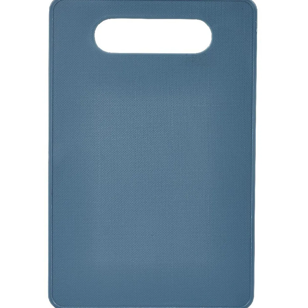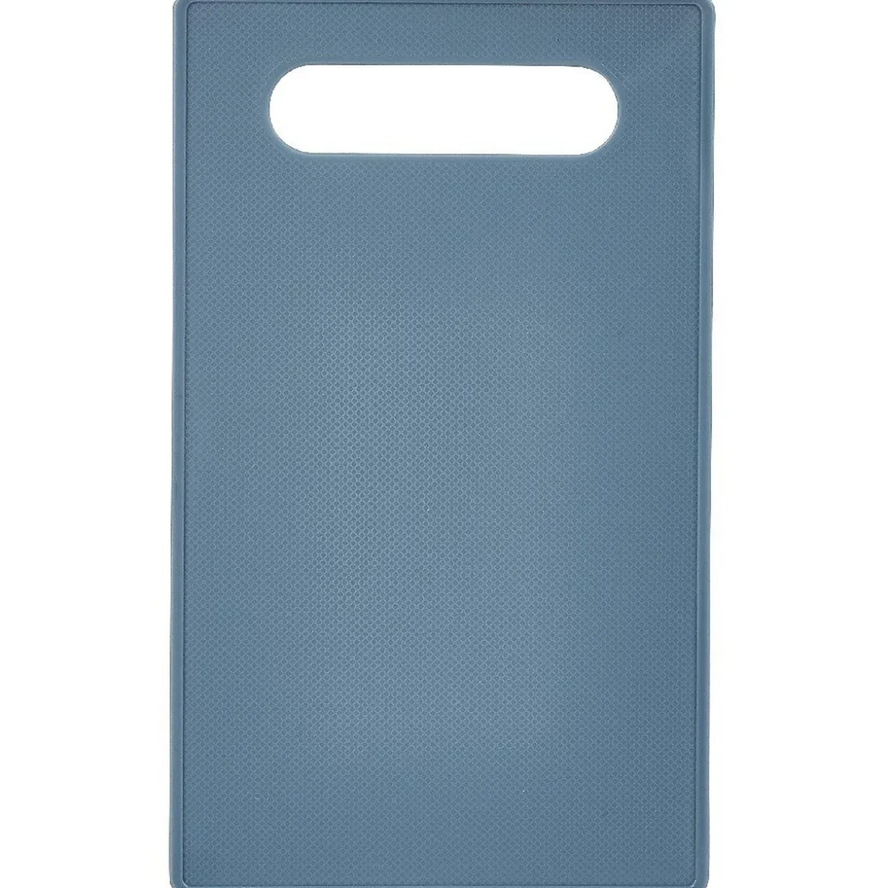 Lot de 3planches à découper rectangulaires et couteau du chef lame inox assorti. Ensemble dans les tons bleu – gris.