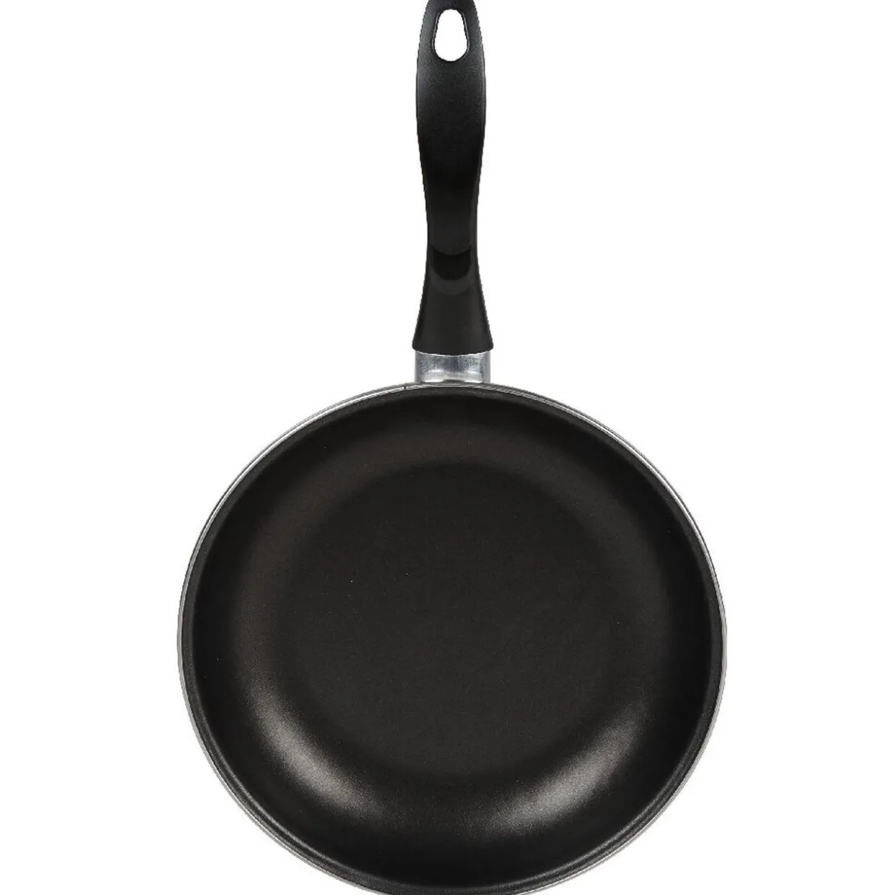 Poêle en acier émaillé anti-adhésif noir et beige de 28 cm de diamètre.