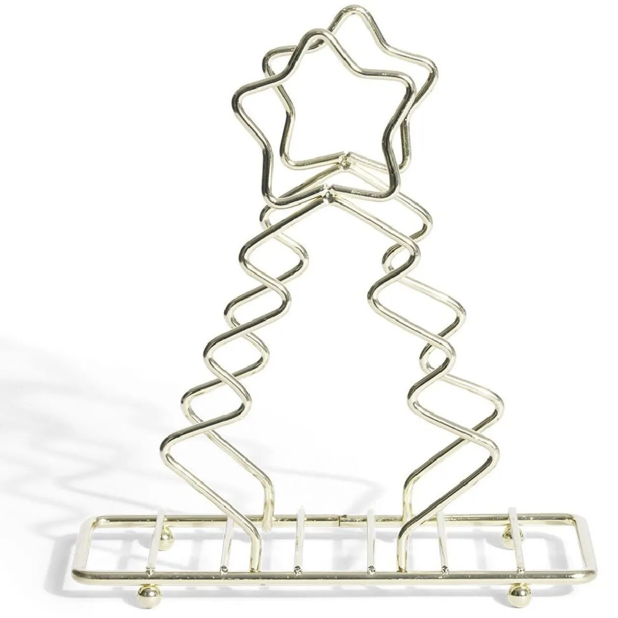 Porte-serviette en forme de sapin en métal doré, idéal pour décorer votre table de Noël.