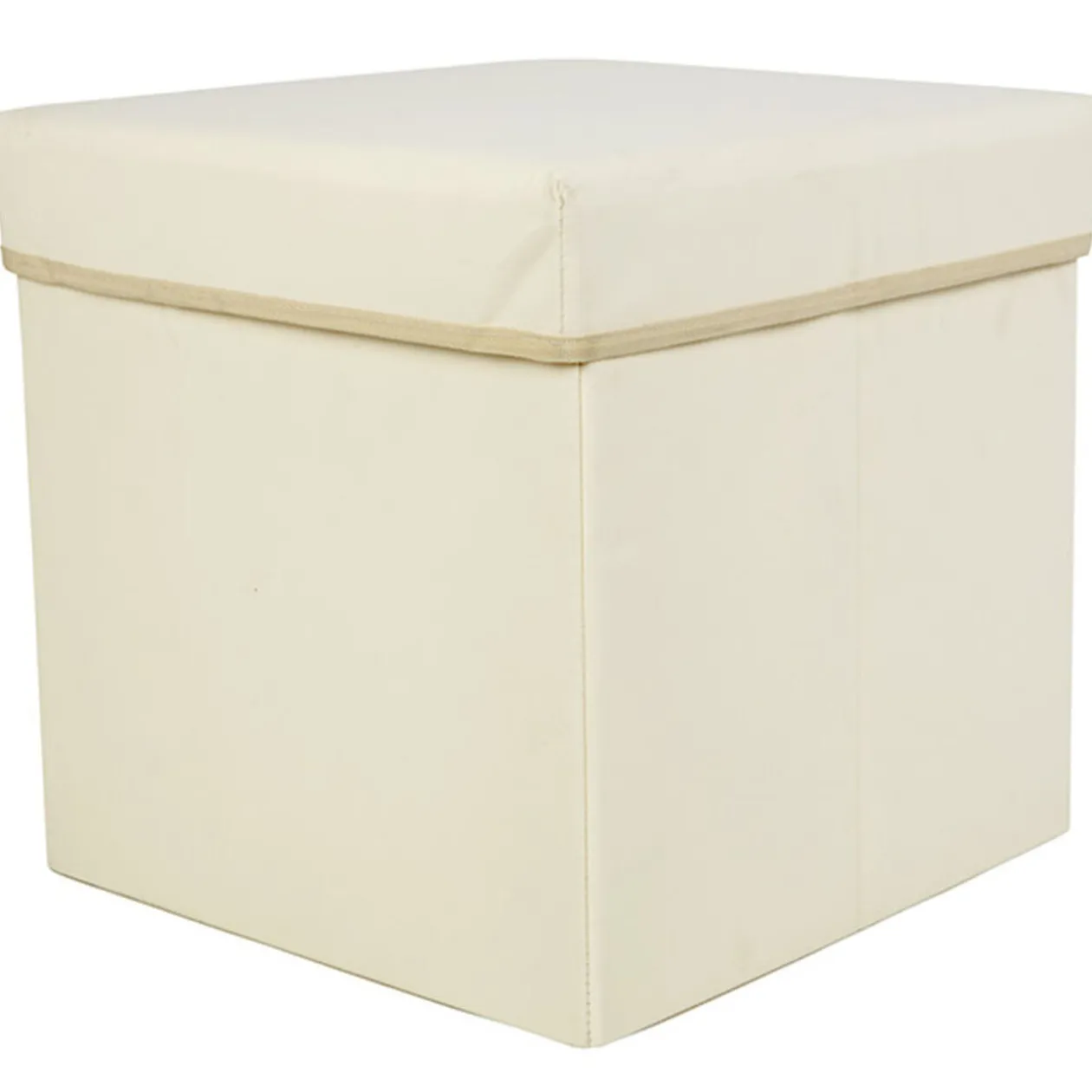 Pouf de rangement ivoire, dim. 38x38xh.38 cm, polyuréthane.