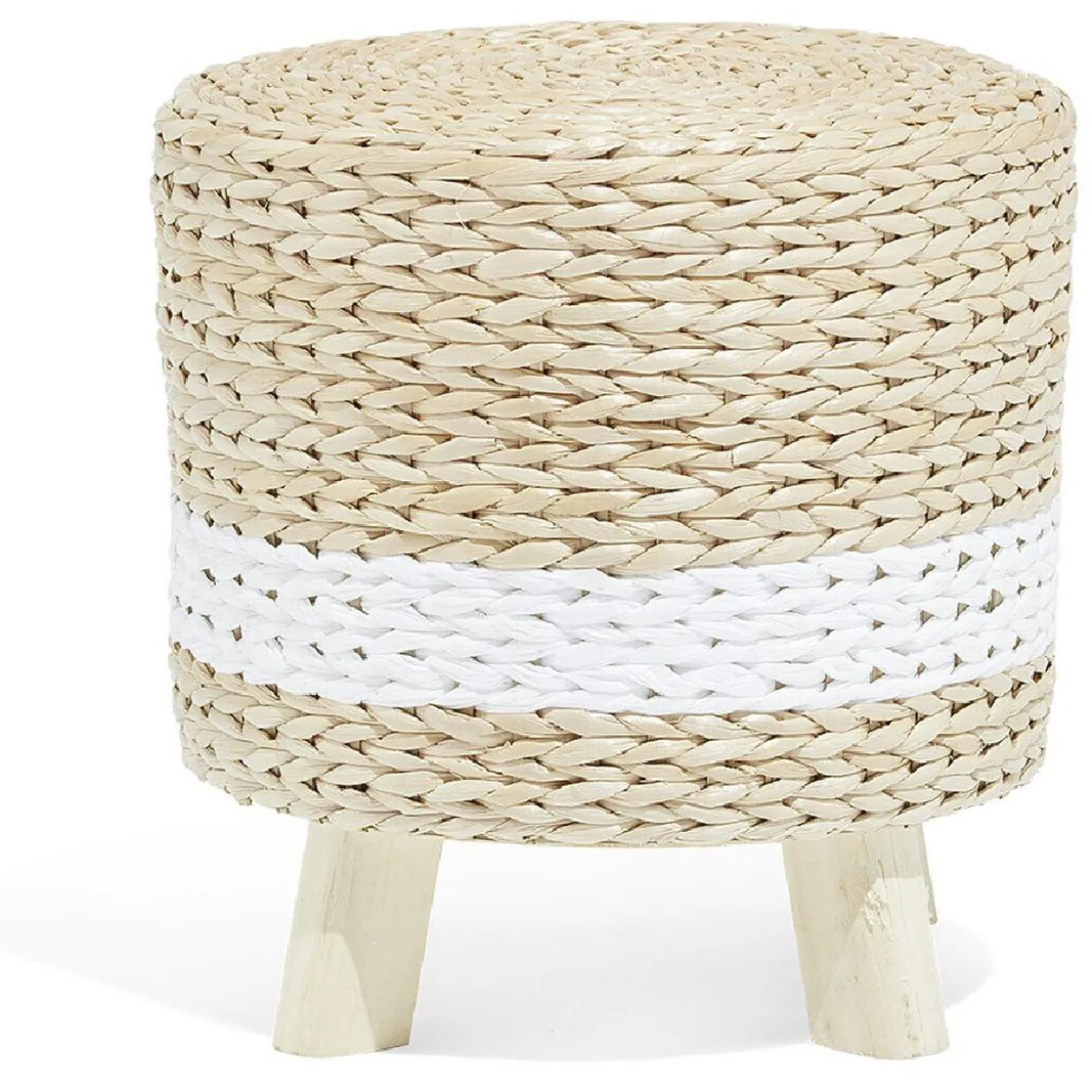 Pouf rond bicolore sur 4 pieds de la gamme Thais en jacinthe d’eau tressée.