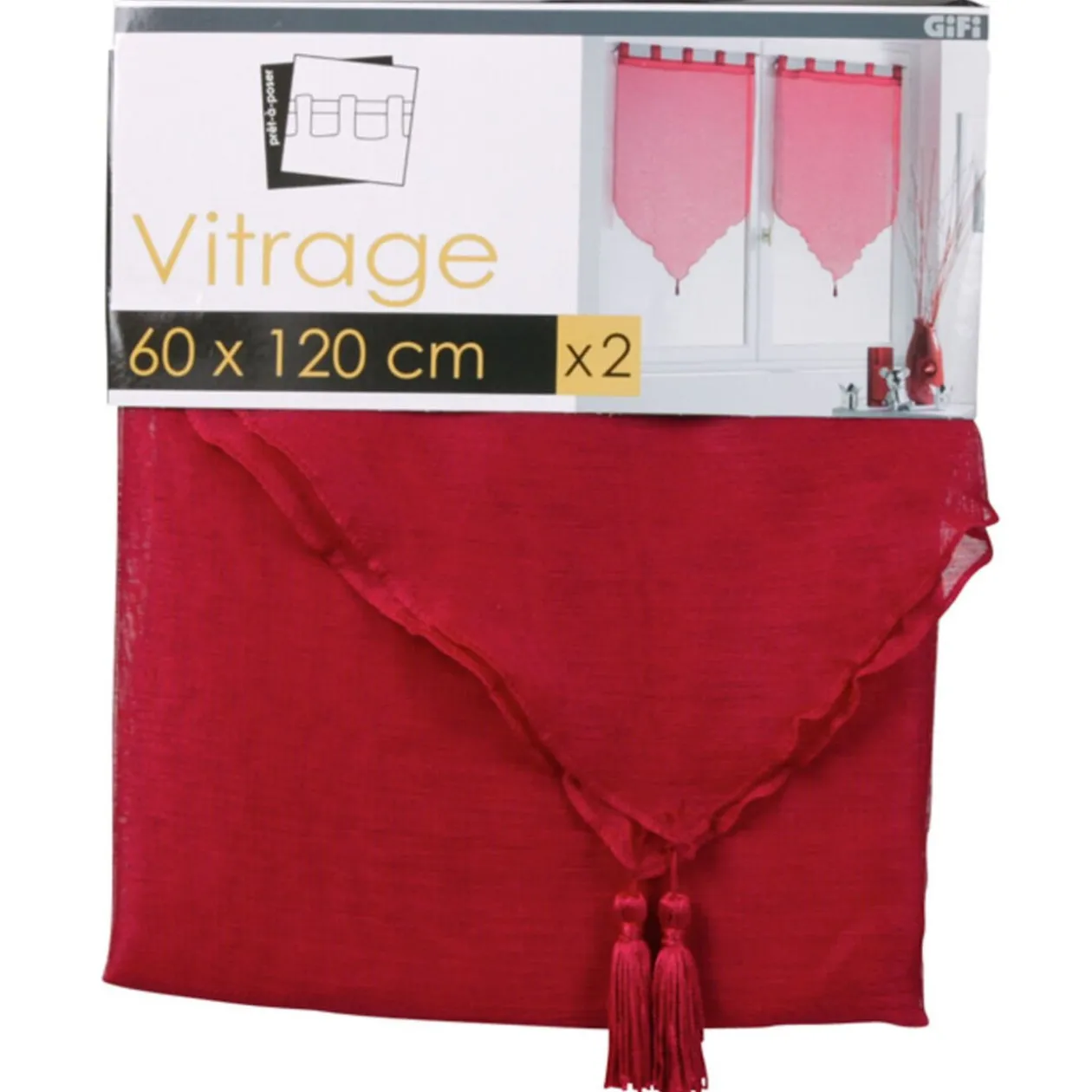 Paire de voilage rouge avec pompons Lissea, dim. 60×120 cm, polyester.