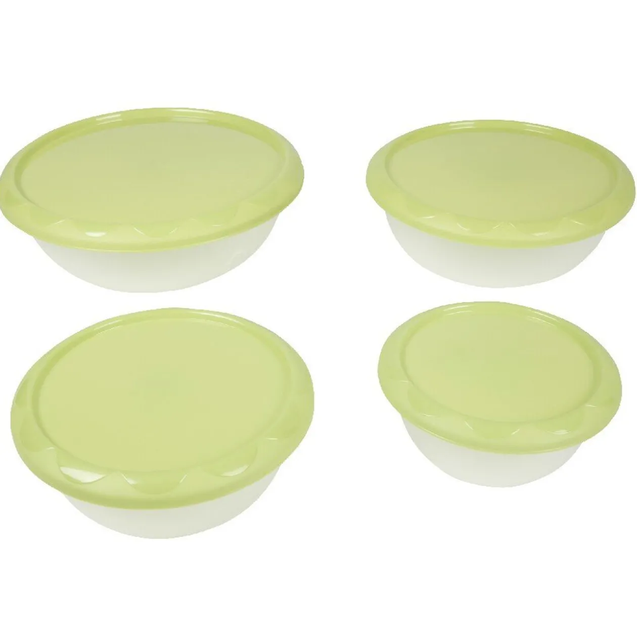 Gagnez de la place avec ces 4 saladiers empilables avec couvercle vert. 4 dimensions pour le guacamole, la sauce vinaigrette, les chips et la salade.