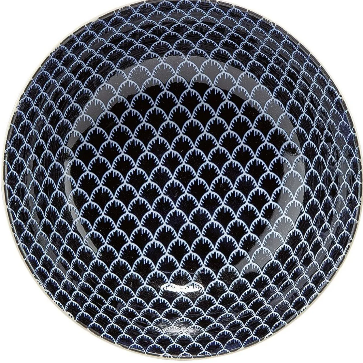 Ø26,5xH.9,5 cm. Existe en 3 modèles. Porcelaine. Blanc et bleu.