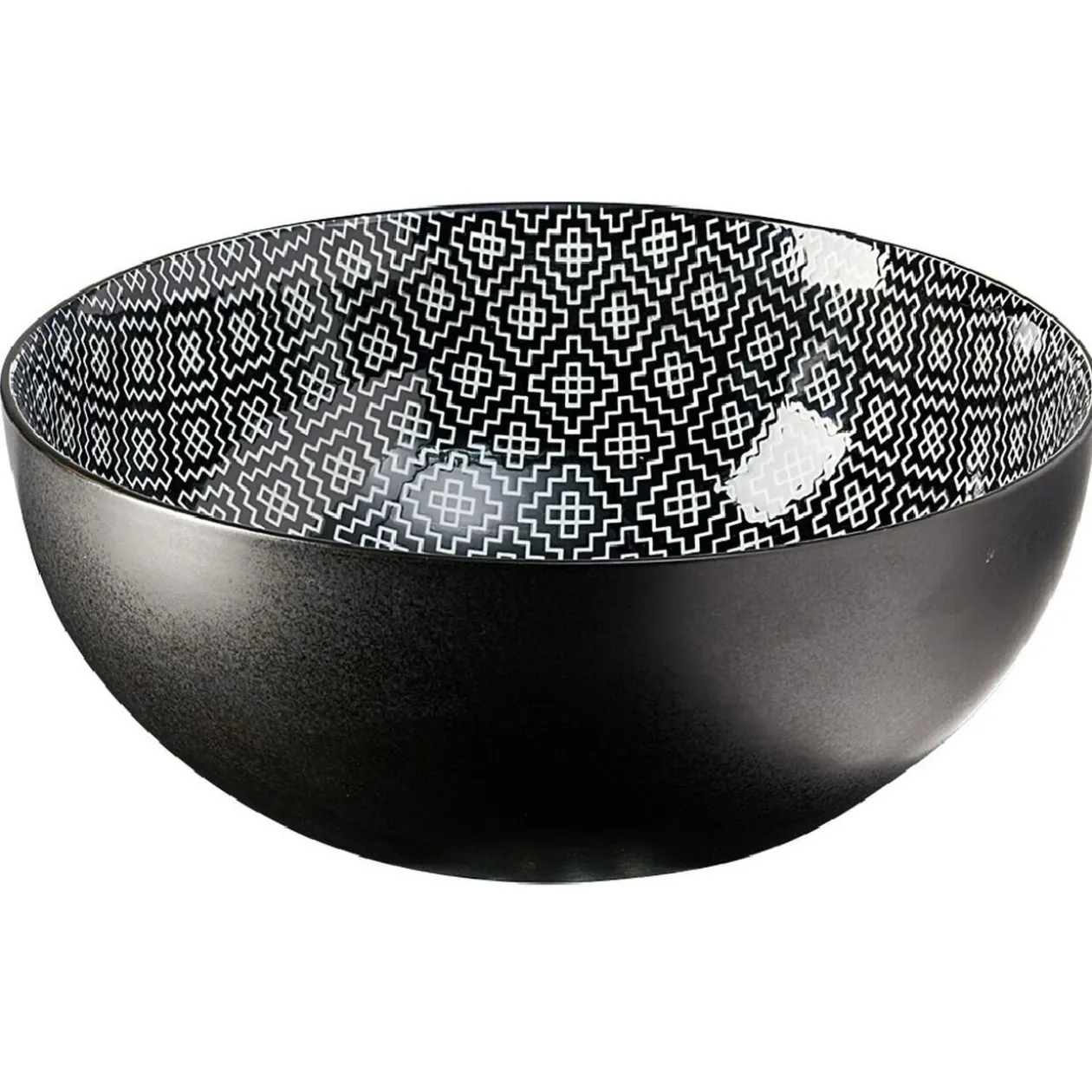 Saladier à motifs géometrique et partie inférieur noire en céramique.