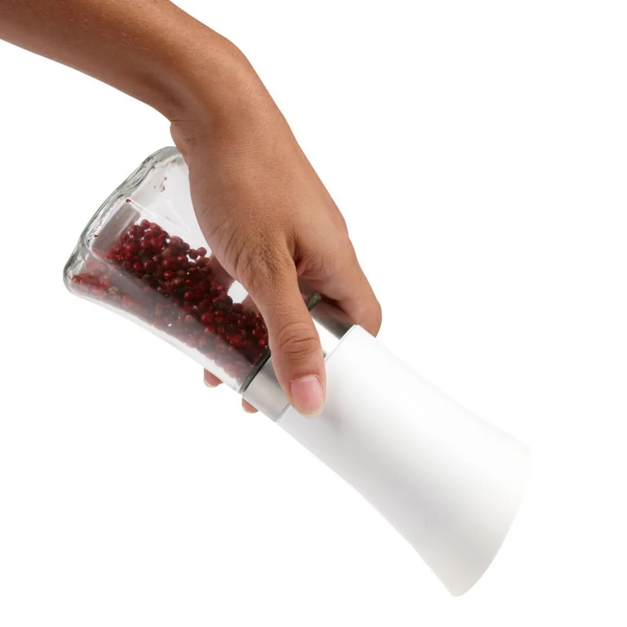 Salière ou poivrière électrique, dim. Ø7,5xh.21 cm, verre et plastique.