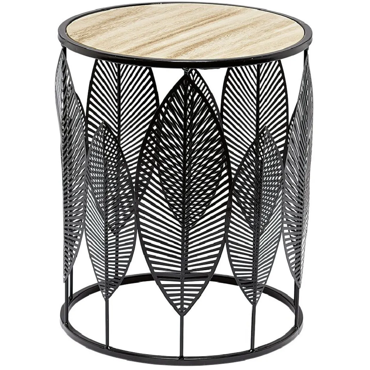 Superbe sellette avec structure en métal design feuilles noires avec plateau en pin naturel.