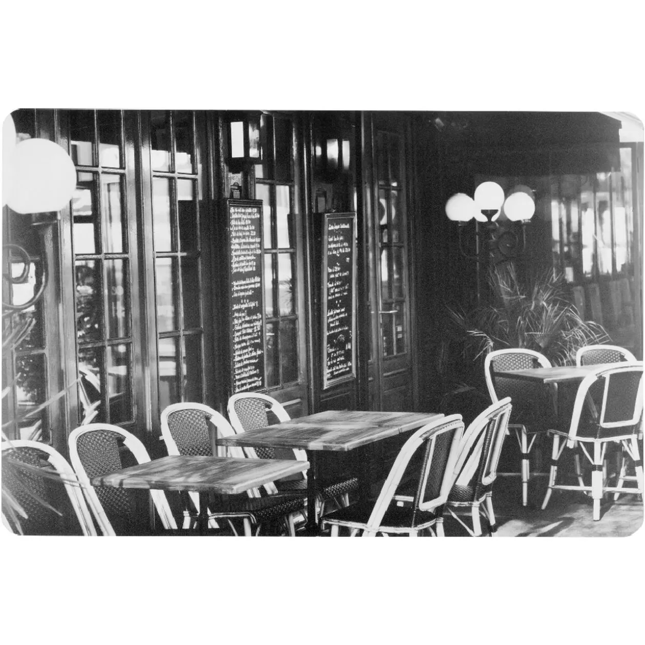 Surprenez vos convives avec ce set de table au décor photo terrasse de café! Facile à nettoyer et très résistant, vous ne vous lasserez pas de ce modèle original imprimé en noir et blanc pour une déco rétro et conviviale