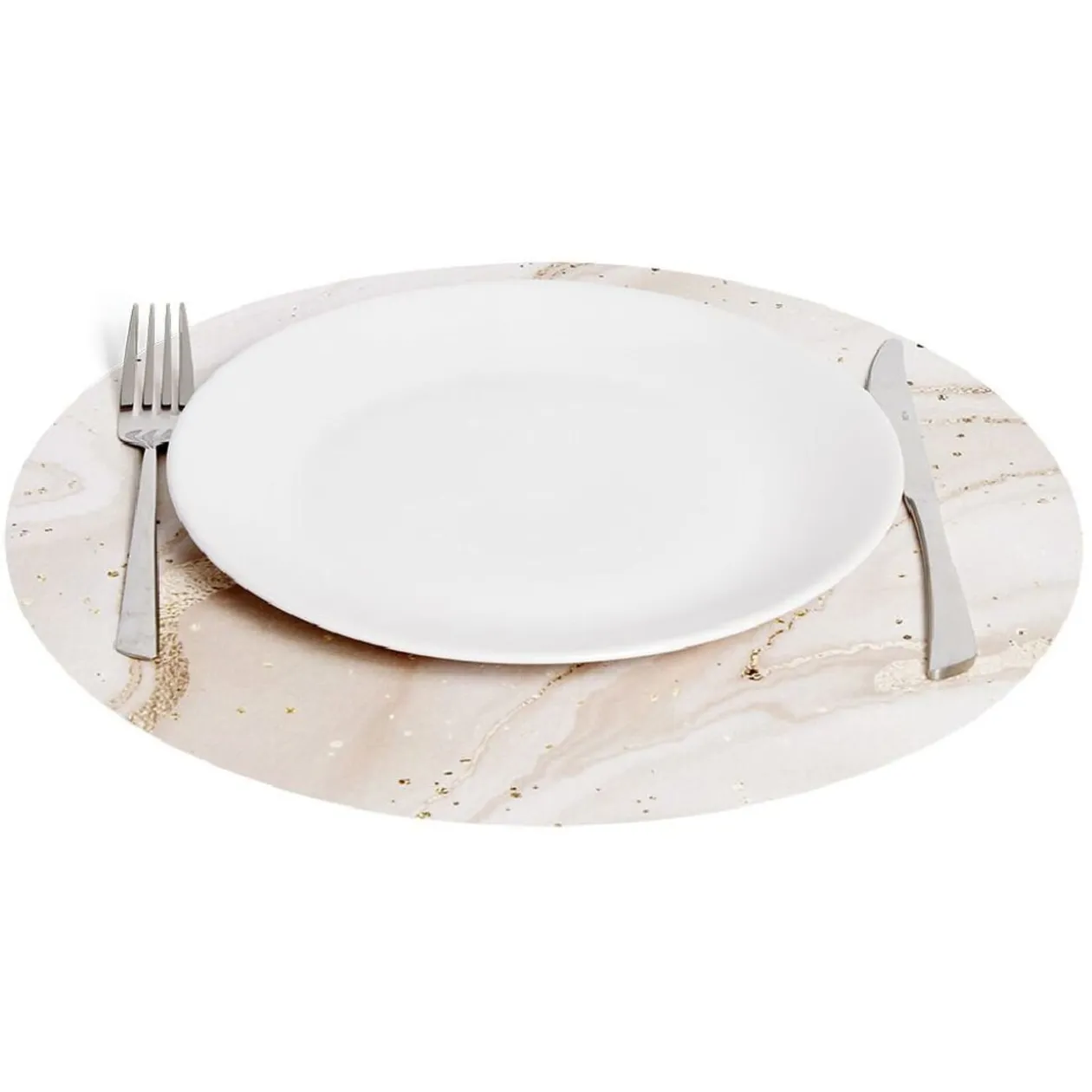 Pour une décoration de table réfléchie jusque dans les moindres détails, choisissez ce ravissant set de table rond à motif marbre.