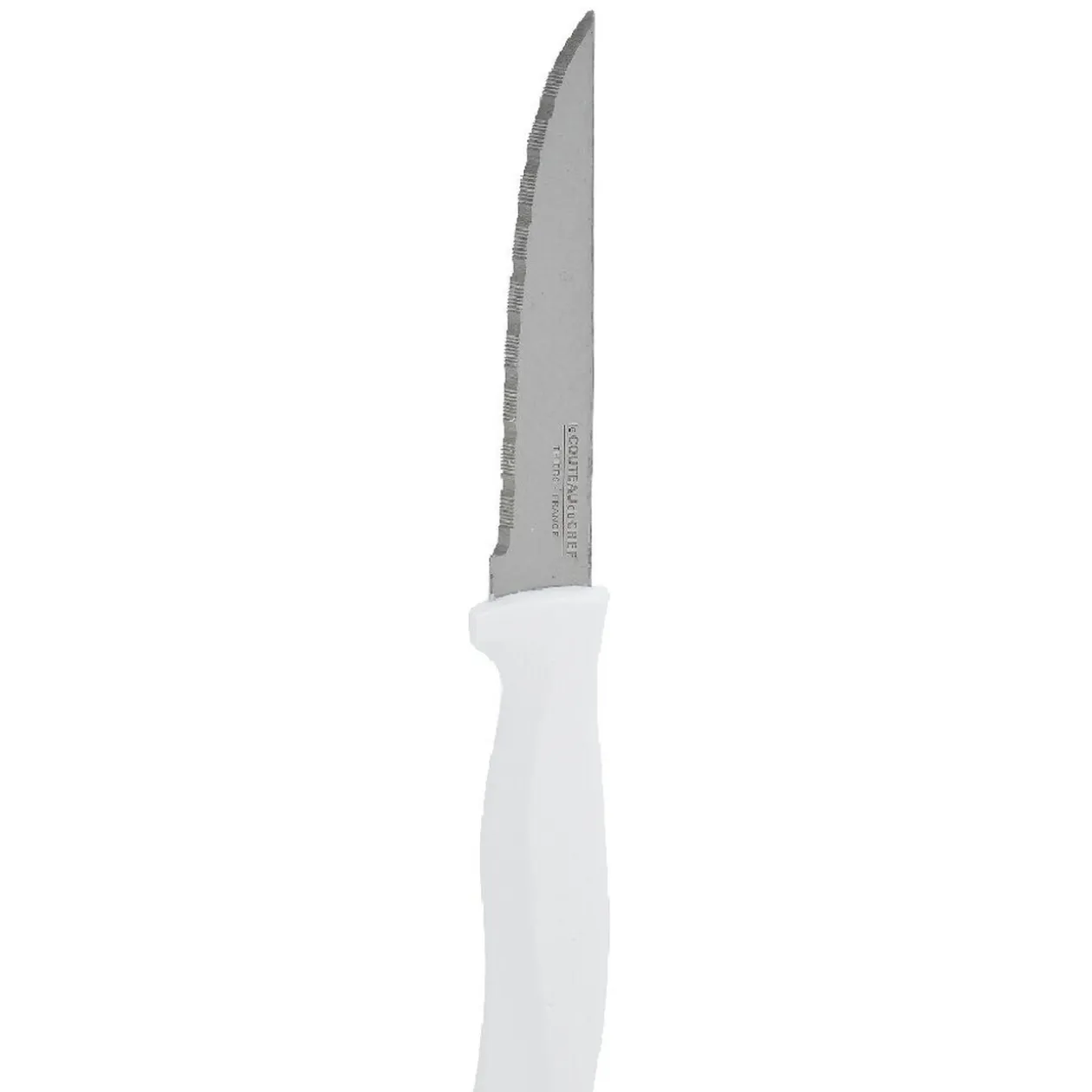 6 couteaux de cuisine en métal avec manche en plastique de couleur gris clair.
