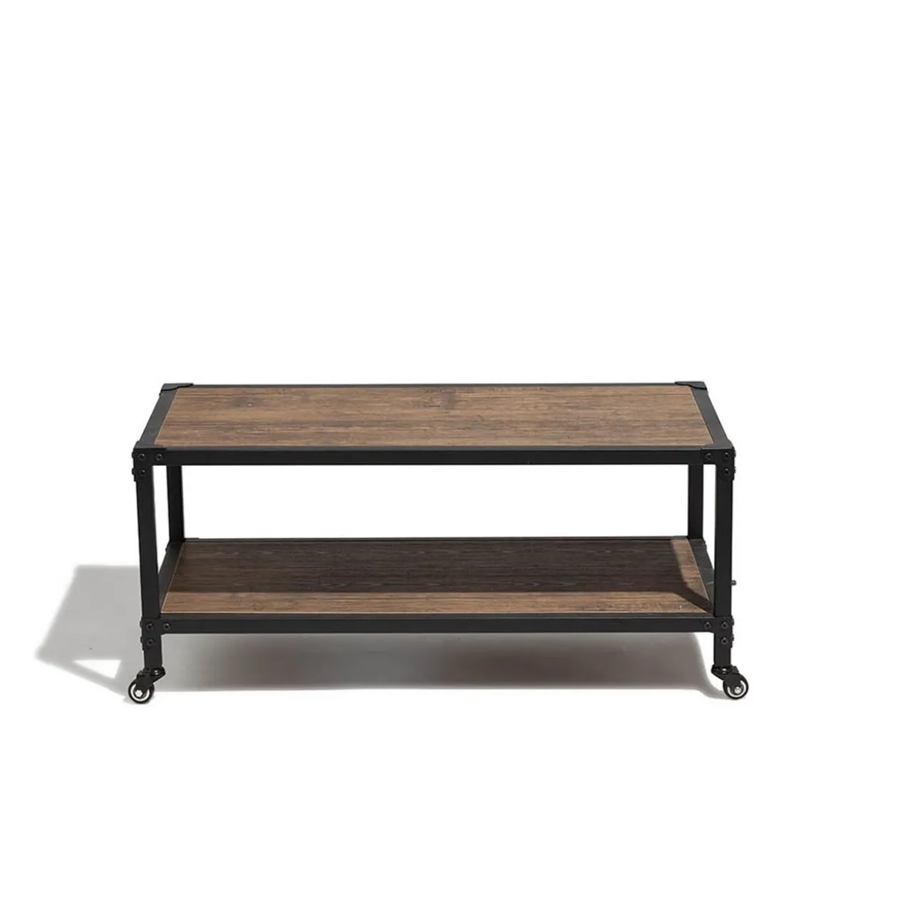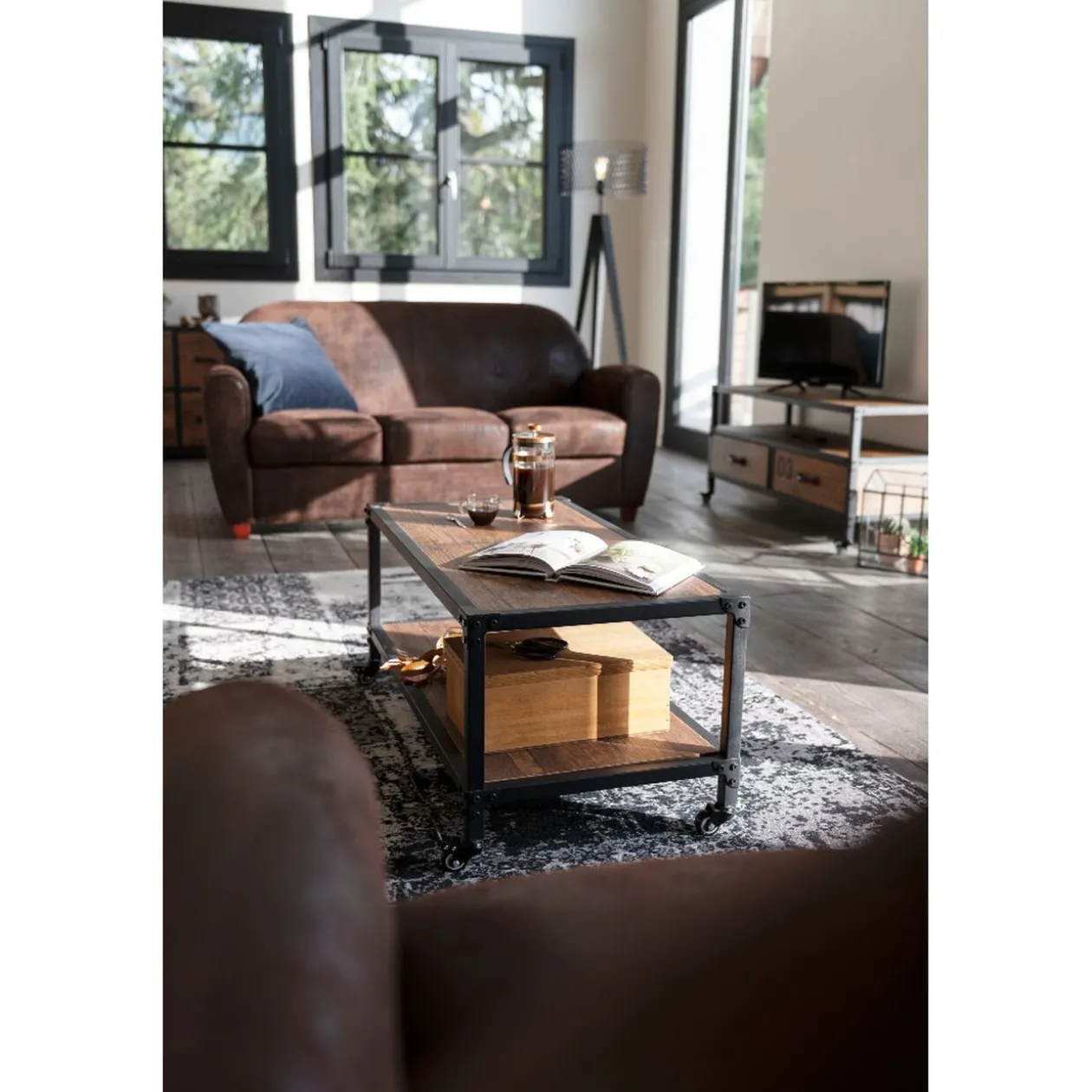 Réagencez en toute simplicité votre intérieur avec notre table basse à roulettes naturelle et noire de la gamme Chicago. Dotée de quatre roulettes au bout de ses pieds, elle se déplace facilement en fonction de vos besoins et de vos envies. Vous pouvez ainsi la placer sur le côté de votre salon ou au contraire au milieu de celui-ci, entre votre télévision et vos sièges. Elle servira alors à poser à portée de main vos rafraichissements, votre télécommande, ou encore des magazines. Que vous soyez seul ou accompagné, cette table basse est un modèle fonctionnel et esthétique ! En effet, avec son plateau en panneau de particules qui imitent le bois et sa structure en métal noir, elle mélange les matières et donne un certain cachet à votre intérieur. De plus, elle est inspirée du style industriel, très à la mode. Si vous désirez harmoniser votre mobilier, vous pouvez consulter notre catalogue et retrouver le reste de la gamme Chicago, qui comporte un meuble TV par exemple.