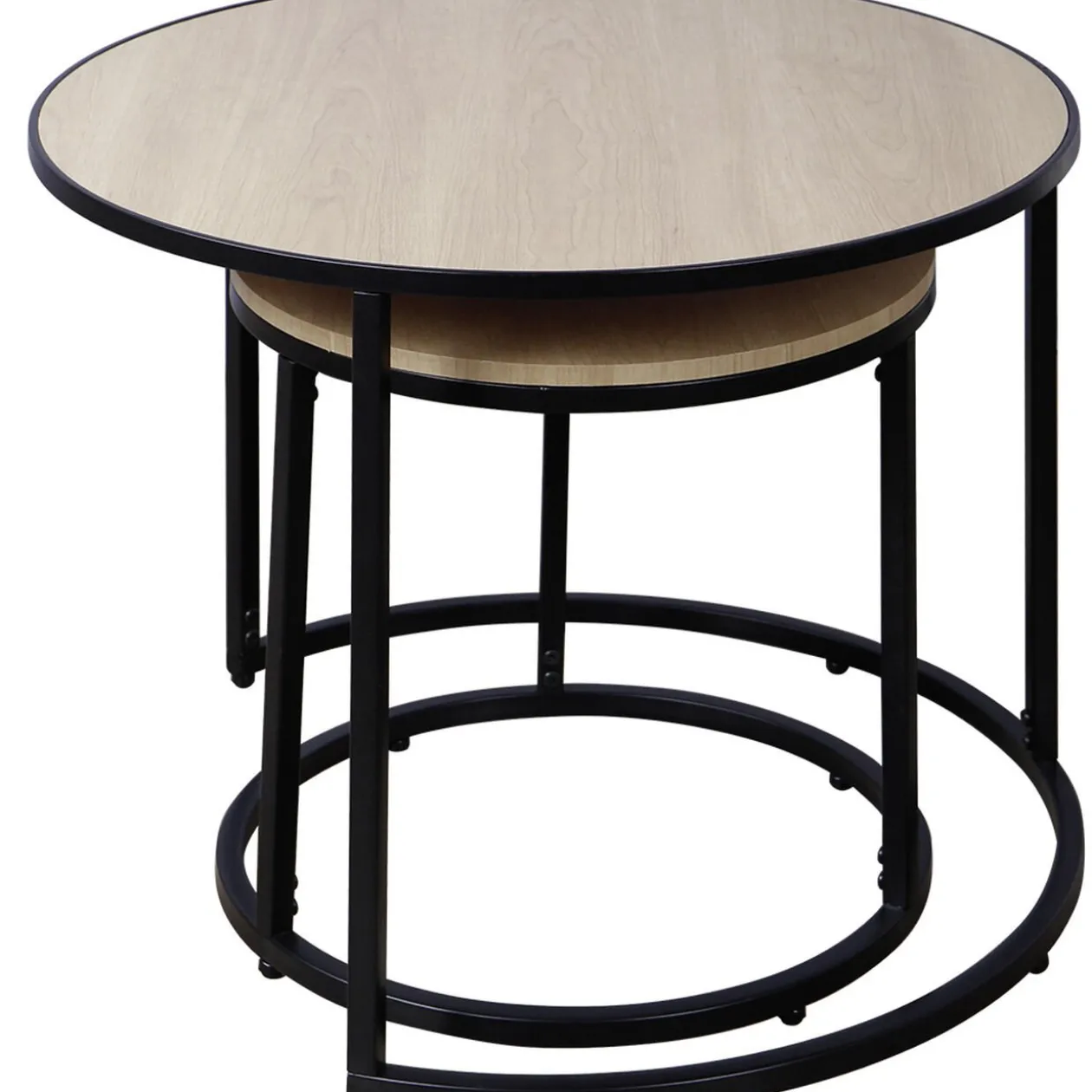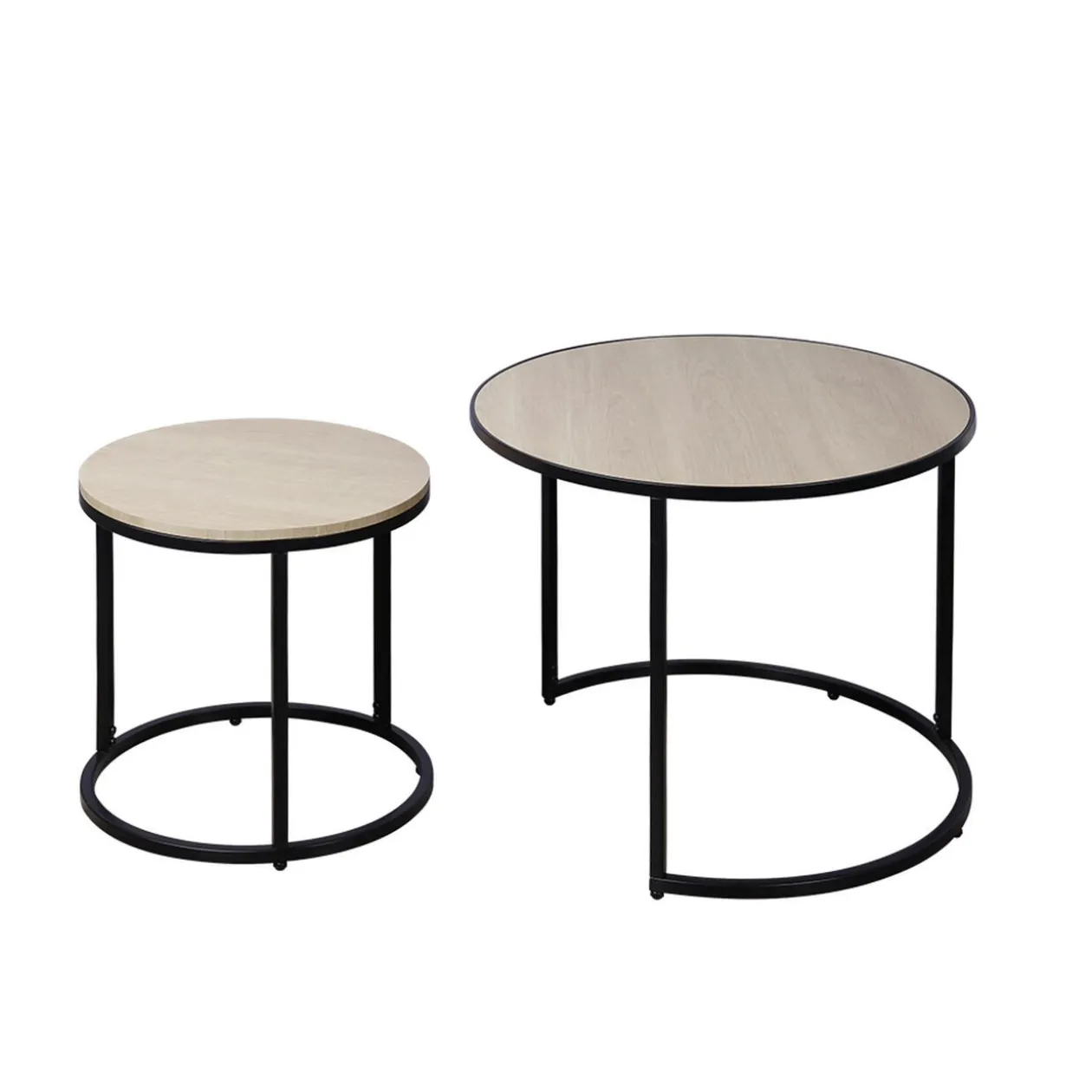 Lot de 2 tables basses gigognes de couleur naturelle et noire, idéales comme table d’appoint dans votre salon ou pour agrémenter le mobilier d’une entrée.
