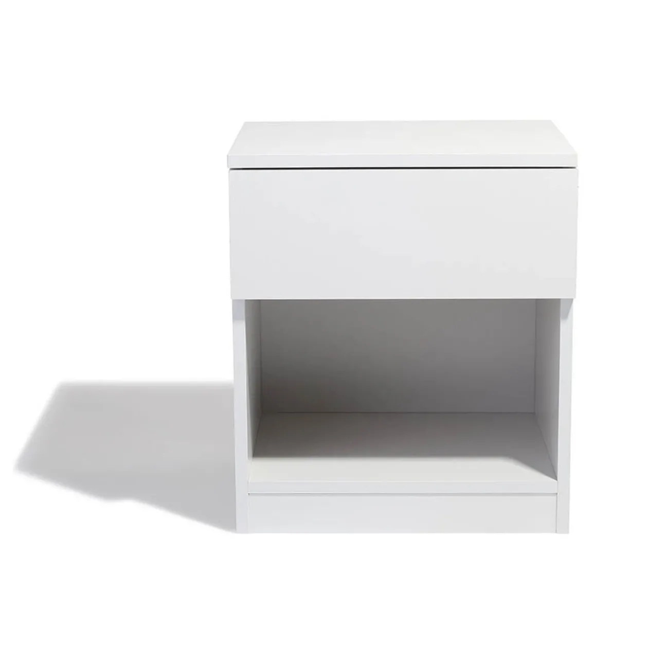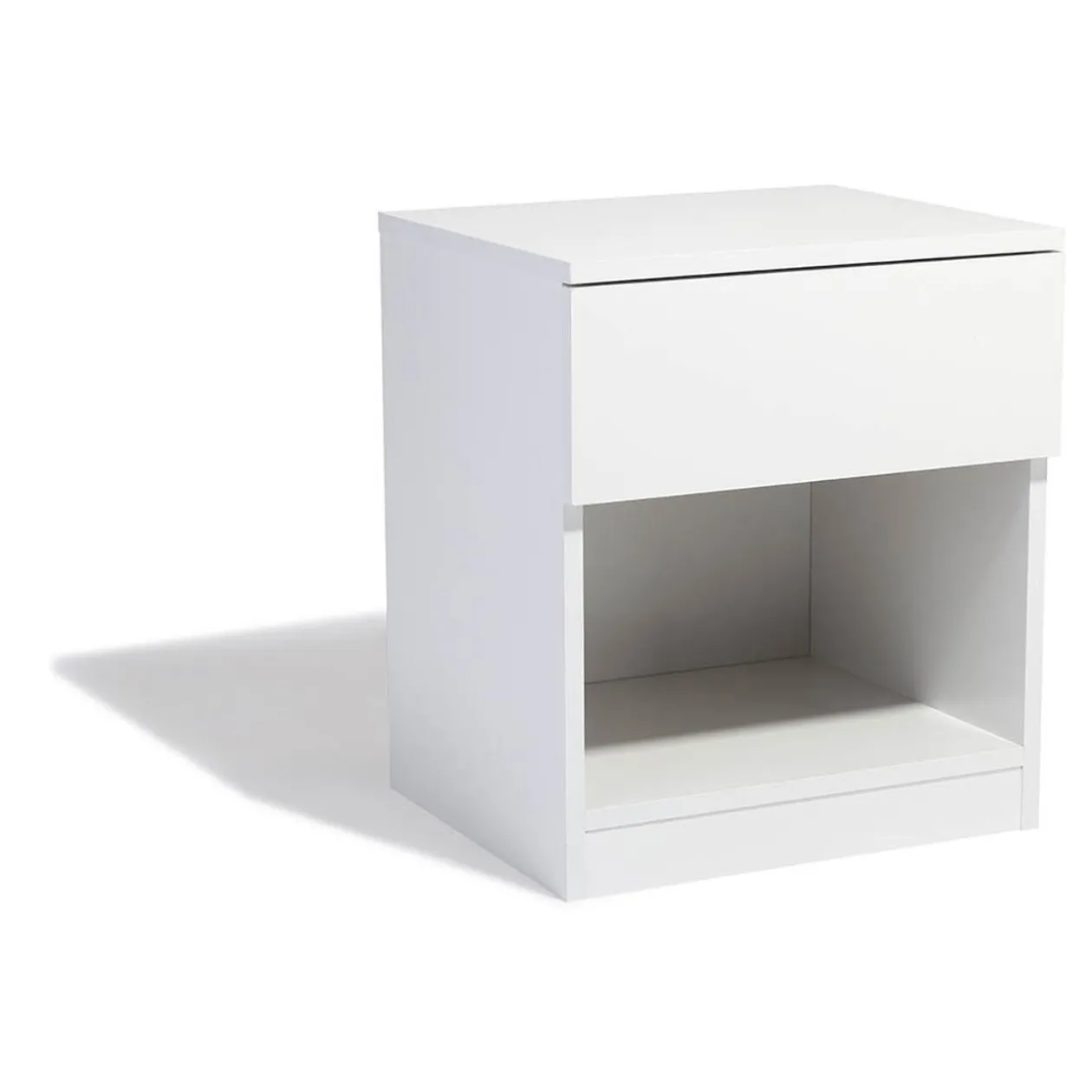 Vous disposez d’une chambre au style plutôt moderne et vous souhaitez l’embellir avec une jolie table de nuit ? Craquez pour la table de chevet Utah ! Uniformément blanche, elle s’harmonisera parfaitement avec les couleurs de votre chambre. Équipée d’un tiroir et d’une niche, ce meuble vous permet de conserver tout votre nécessaire de nuit près de vous. Pour plus de confort, placez-la à côté de votre lit contre le mur. De cette manière tous vos objets seront à portée de main. Pour jouer sur les styles, associez cette table de nuit avec des objets décoratifs vintage. Si vous souhaitez rester dans l’esprit contemporain, vous pouvez opter pour une lampe de chevet moderne et une petite plante. Effet assuré ! N’hésitez pas à consulter notre catalogue, vous y trouverez d’autres meubles de cette même gamme comme une commode, un meuble à chaussures et un buffet.