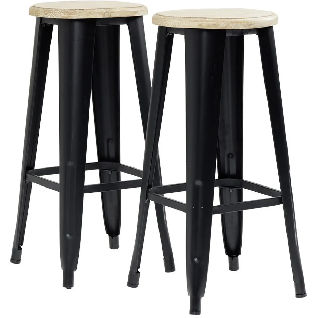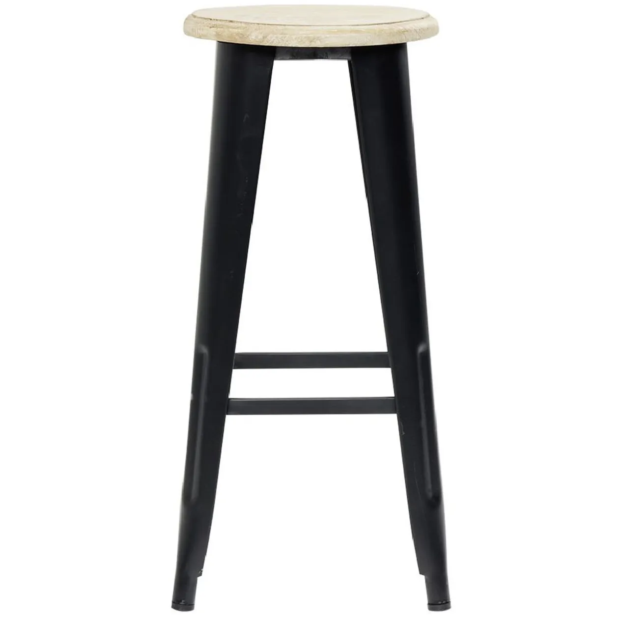 La structure en métal noir de ces tabourets apporte à l’ensemble sobriété et élégance. Cette teinte contraste avec le coloris clair naturel de l’assise, rappelant le style industriel.