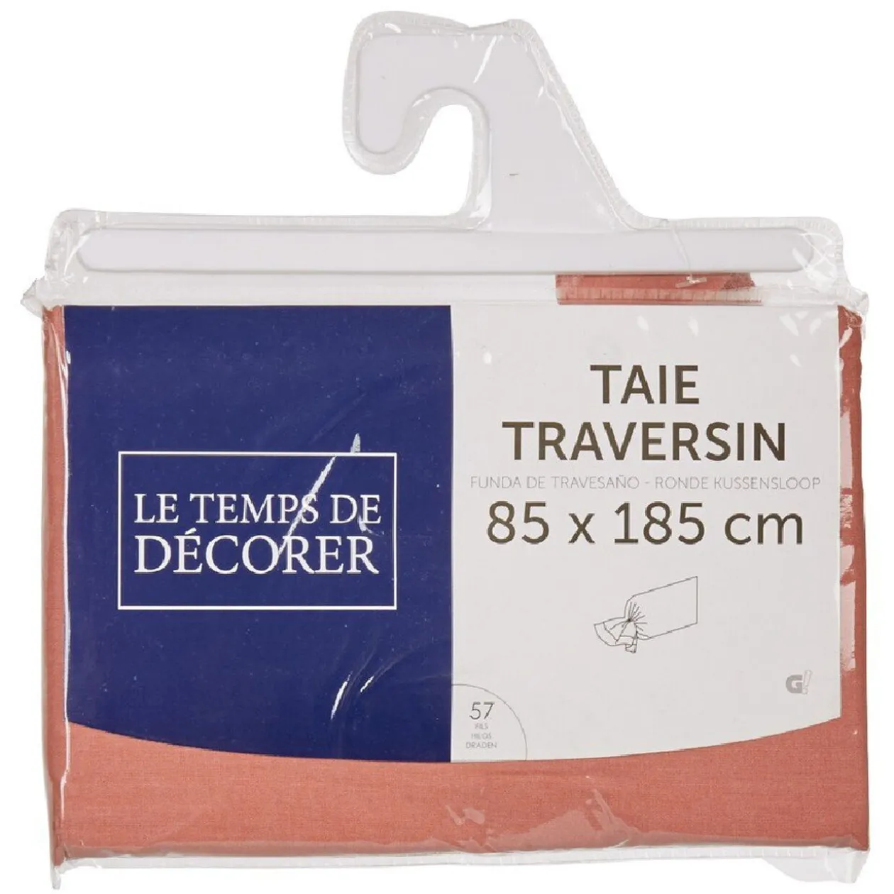 Taie de traversin rectangulaire, unie, de couleur rose pêche (orangé).