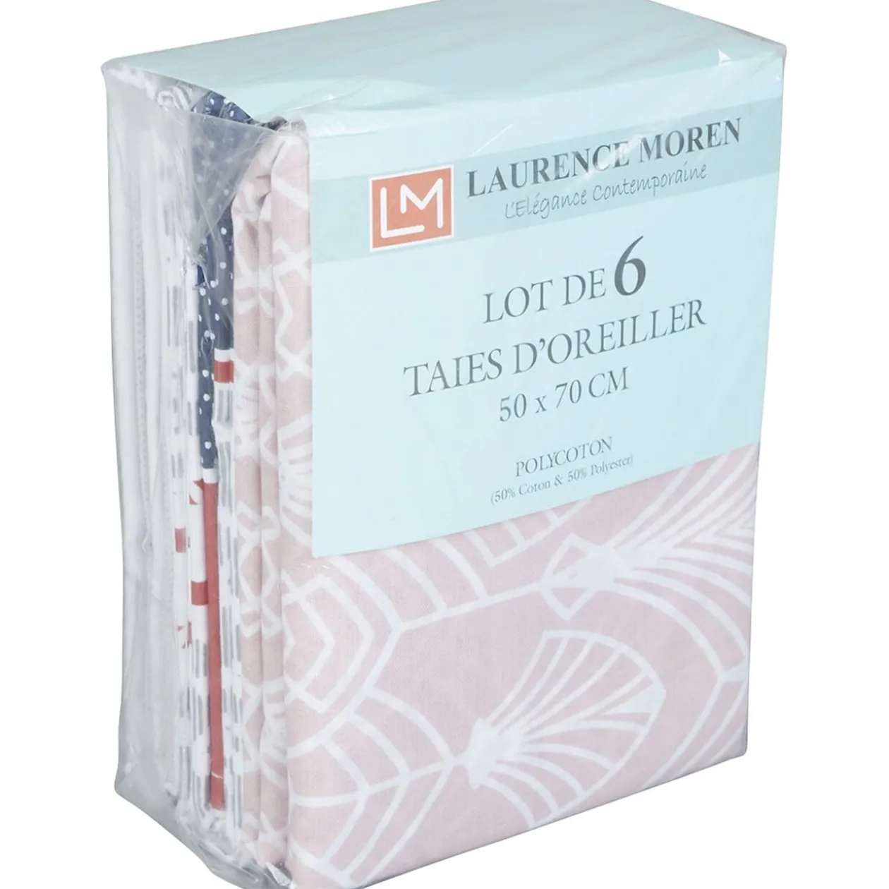 Lot de 6 taies d’oreiller rectangulaires avec imprimé de différents motifs.