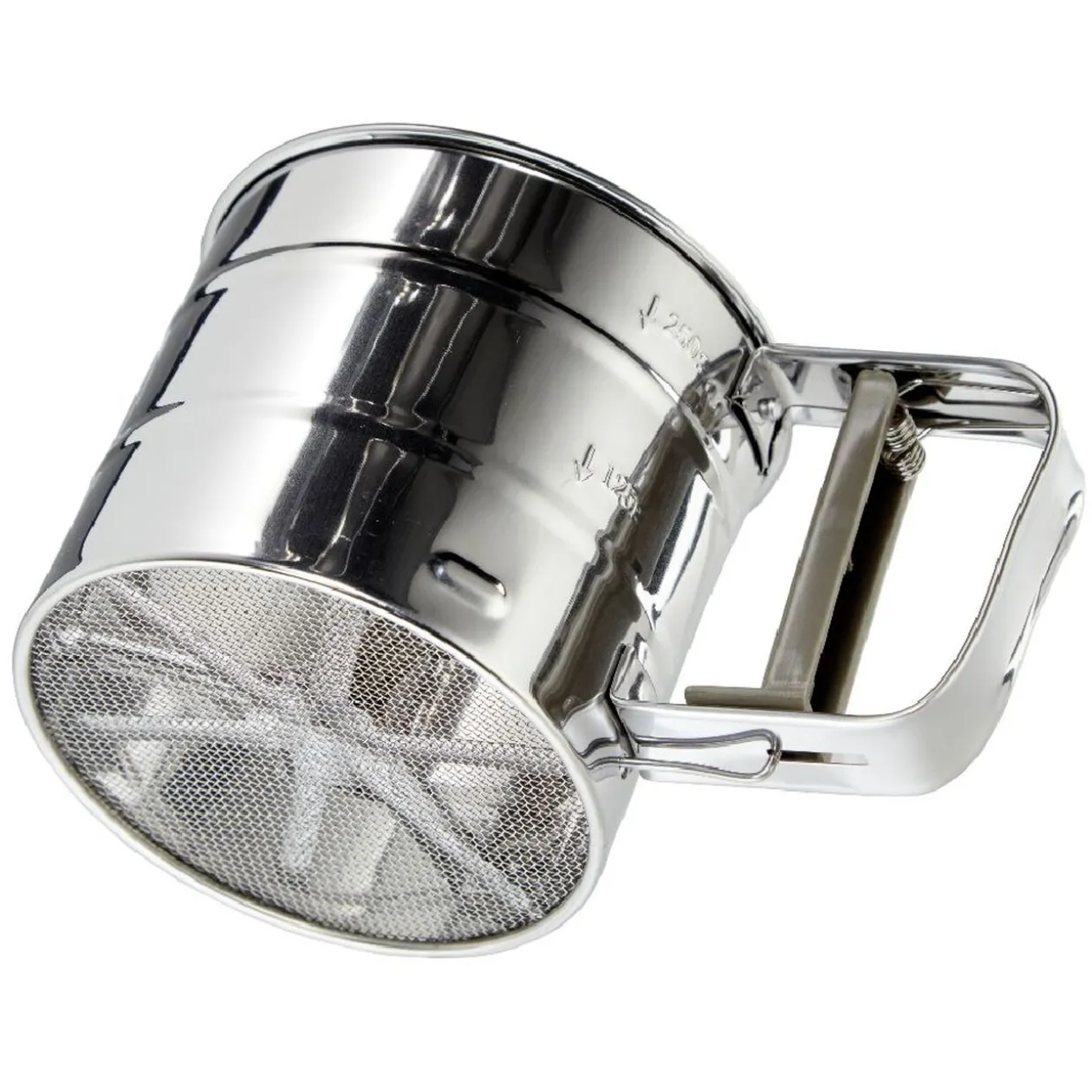 Tamiseur à farine en inox. Parfait également pour saupoudrer vos crêpes et autres gourmandises de sucre, sucre glace…