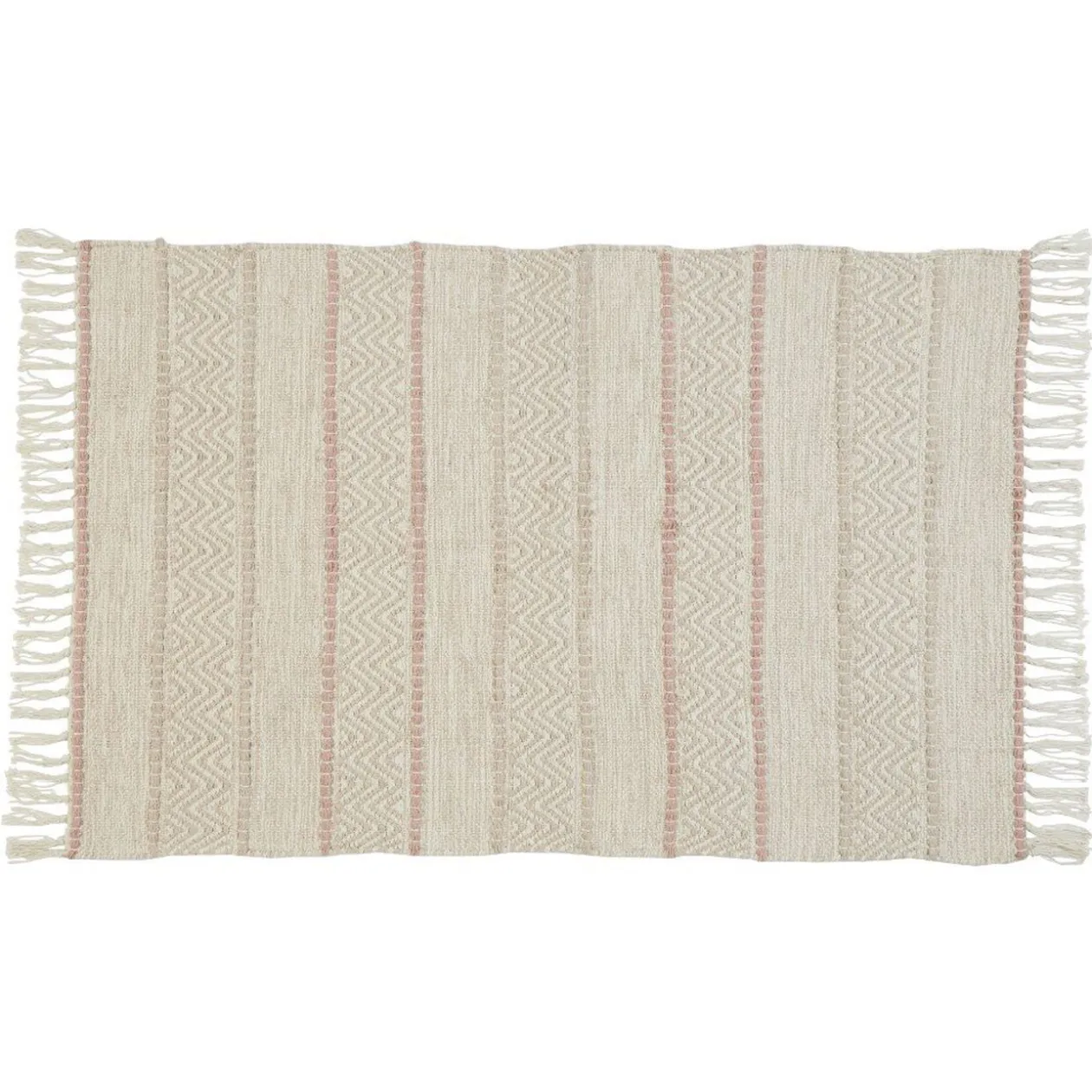 Habillez votre entrée ou encore votre chambre avec ce tapis à franges motifs chevrons de couleur beige. Il saura dénoter une touche naturelle et moderne à votre déco intérieure.Dimensions (L x l x h) : 60 x 90 x 1 cm