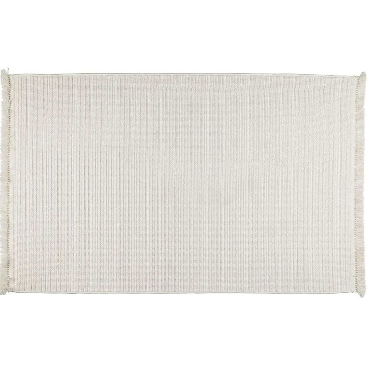 Ce tapis rectangulaire en coton de couleur beige crème sera idéal pour habiller un salon, un bureau ou encore une chambre.