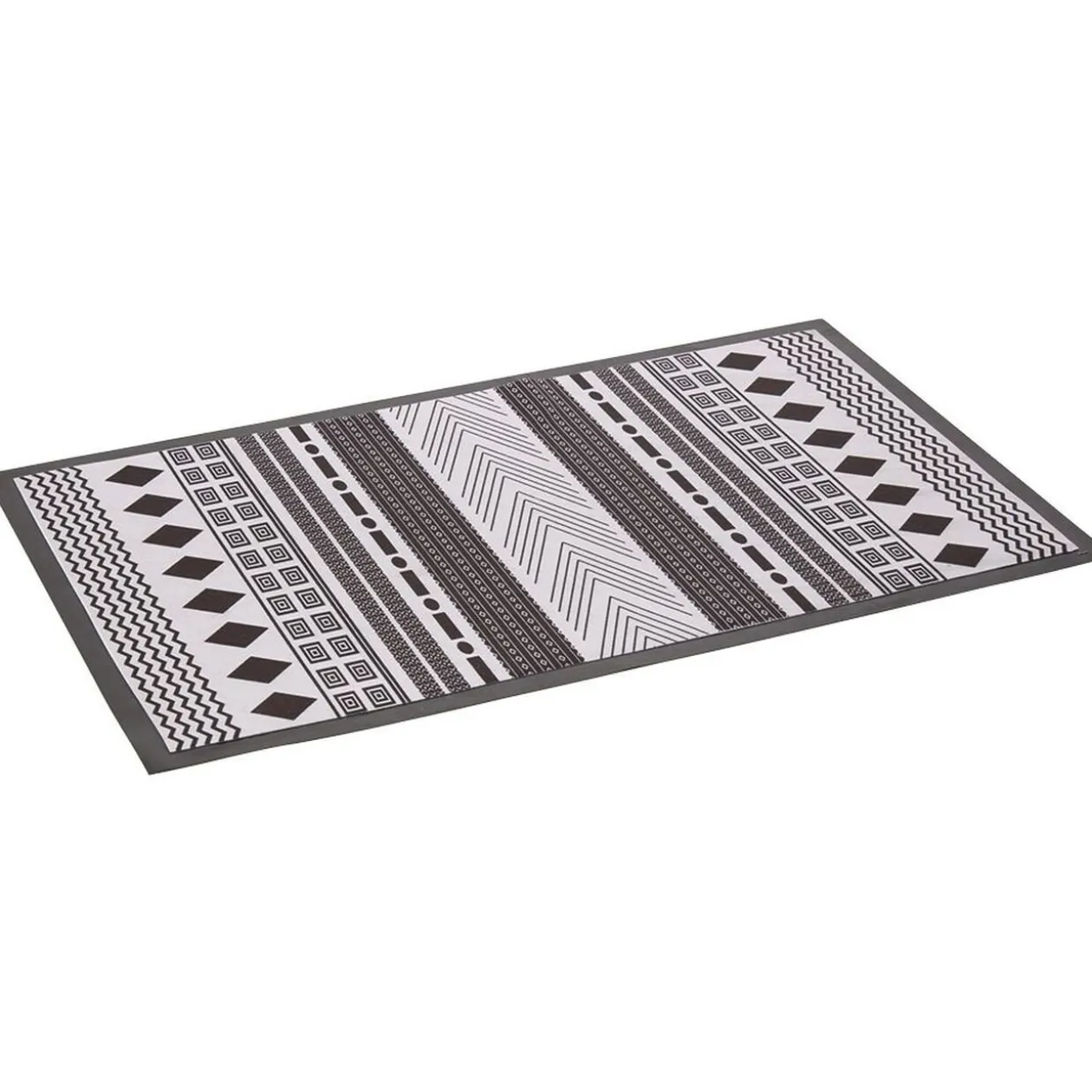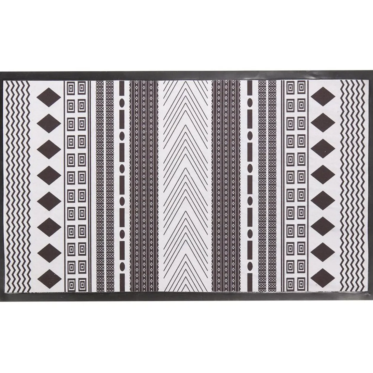 Tapis anti-poussière pour l’intérieur avec imprimé de style ethnique noir et blanc.