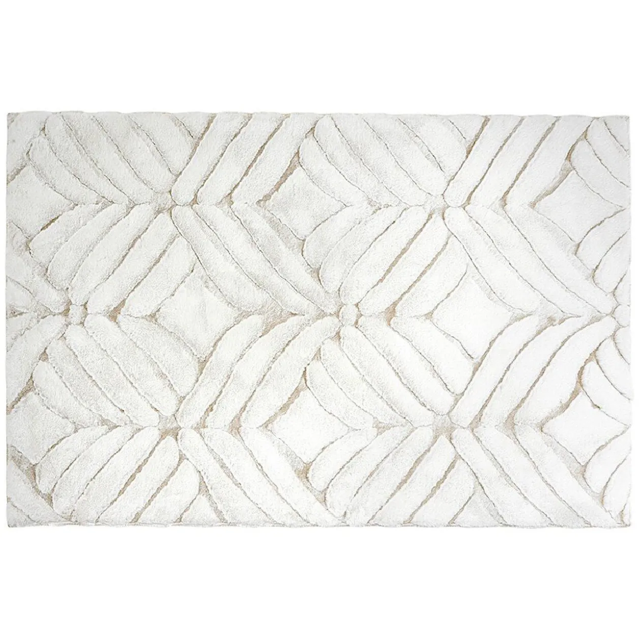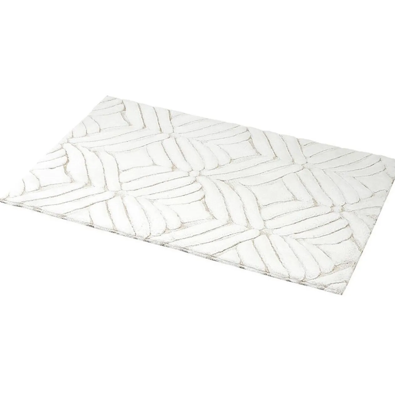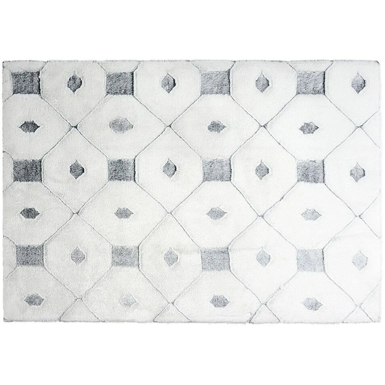 Tapis effet fourrure de couleur blanc à reliefs gris ou taupe.