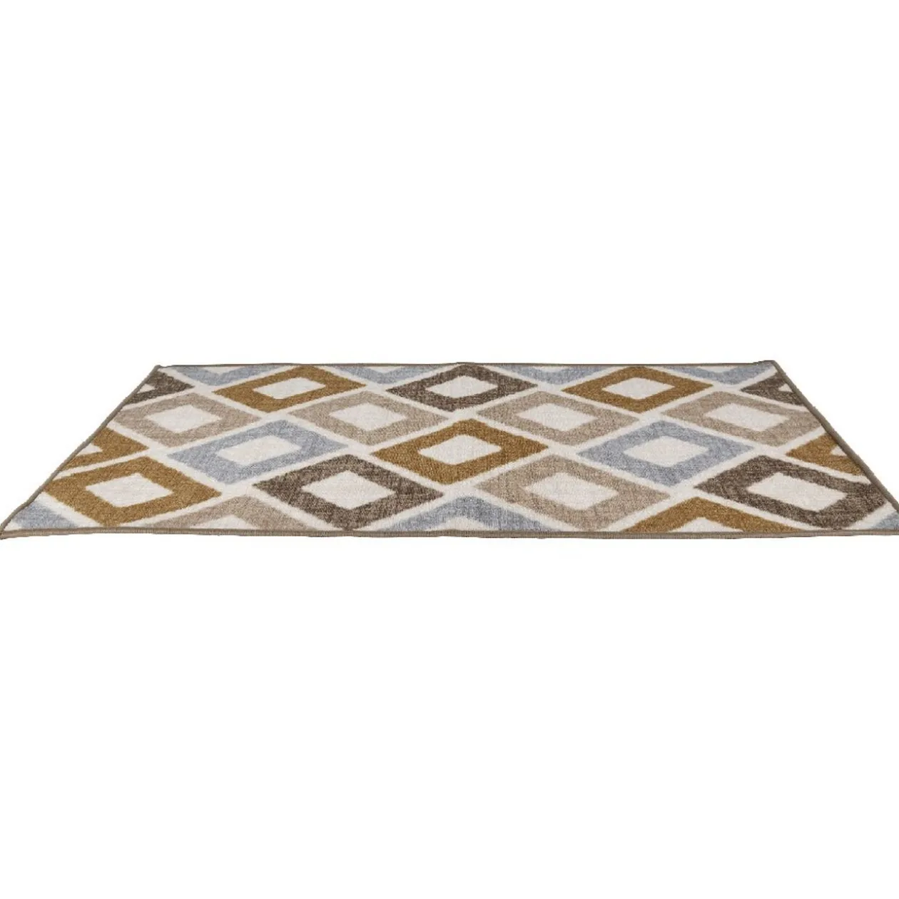 Habillez votre couloir ou votre table basse avec ce tapis d’une longueur de 120 cm. Mis en valeur par ses couleurs douces et chaudes, les motifs losanges bleus, jaune moutarde et marron se marieront avec une décoration sobre ou rétro.