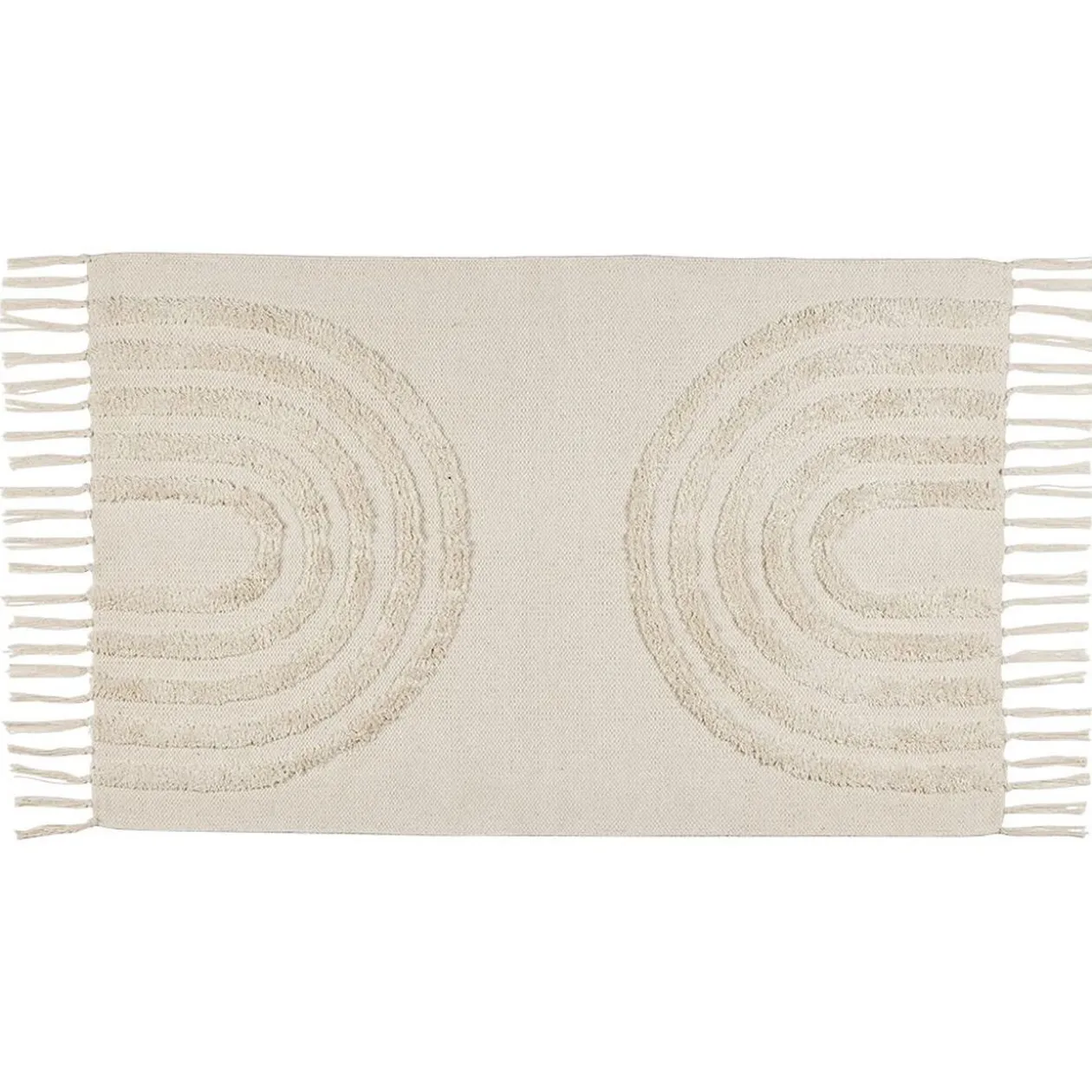 Ce tapis uni beige avec décor tufté en forme d’arc en ciel habillera avec charme le sol de votre chambre ou le salon. Idéal pour créer une atmosphère chaleureuse et accueillante dans votre intérieur.