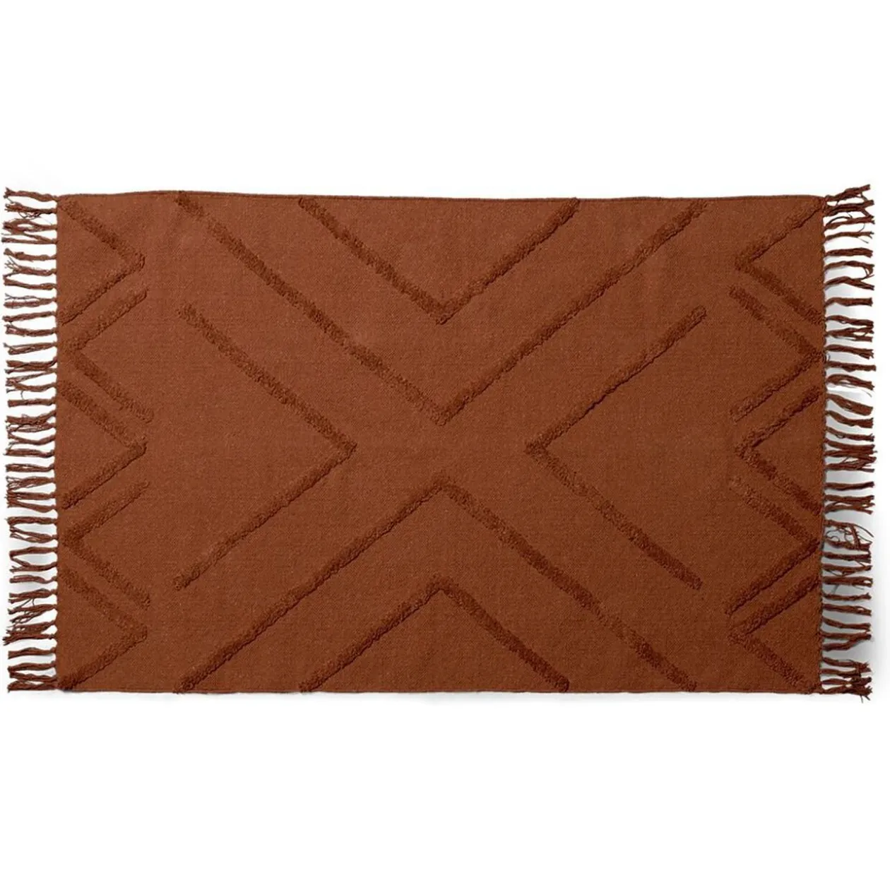 Ce ravissant tapis terracotta avec décor tufté et finition franges s’associera à merveille avec tout type de mobilier. Idéal pour apporter douceur et chaleur à un salon, une chambre ou un bureau.