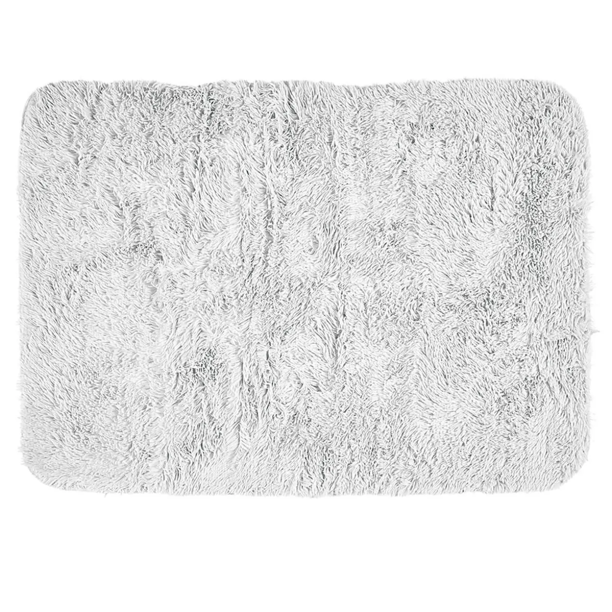 Apportez un brin de douceur à votre salon ou votre chambre avec ce tapis Shaggy de forme rectangulaire imitation fourrure de couleur gris clair.