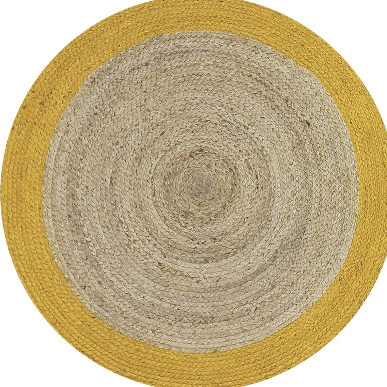 Apportez l’ultime touche finale à votre décoration intérieure grâce à ce tapis rond en jute avec bordure jaune.