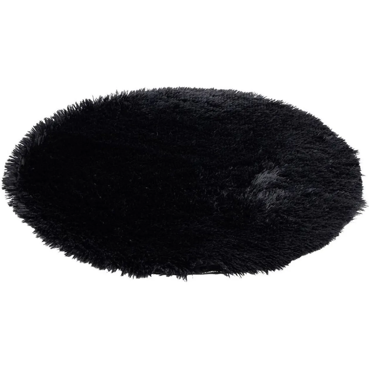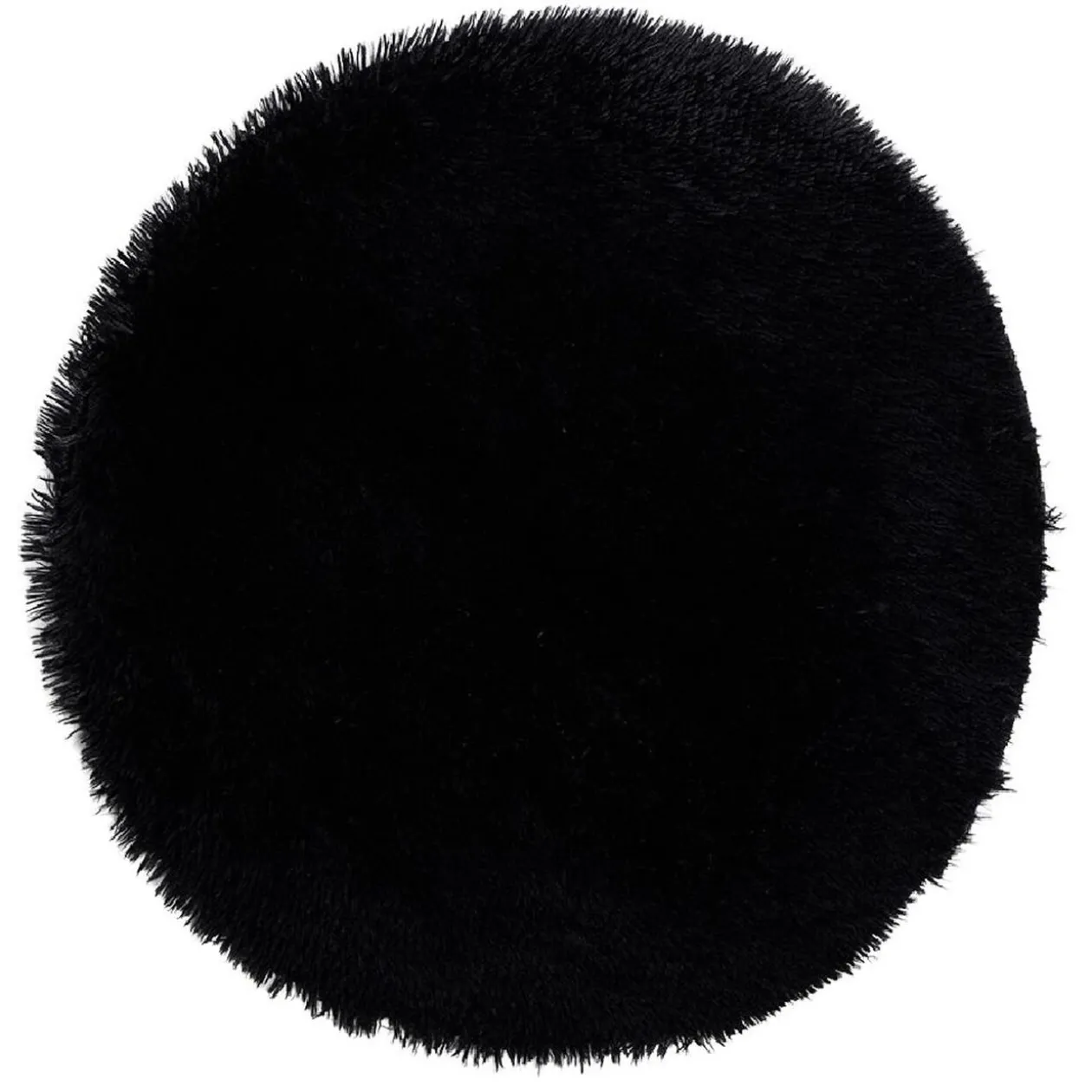 Tapis noir rond, shaggy effet fourrure, doux et confortable avec une agréable sensation lorsque vous marchez pieds nus.