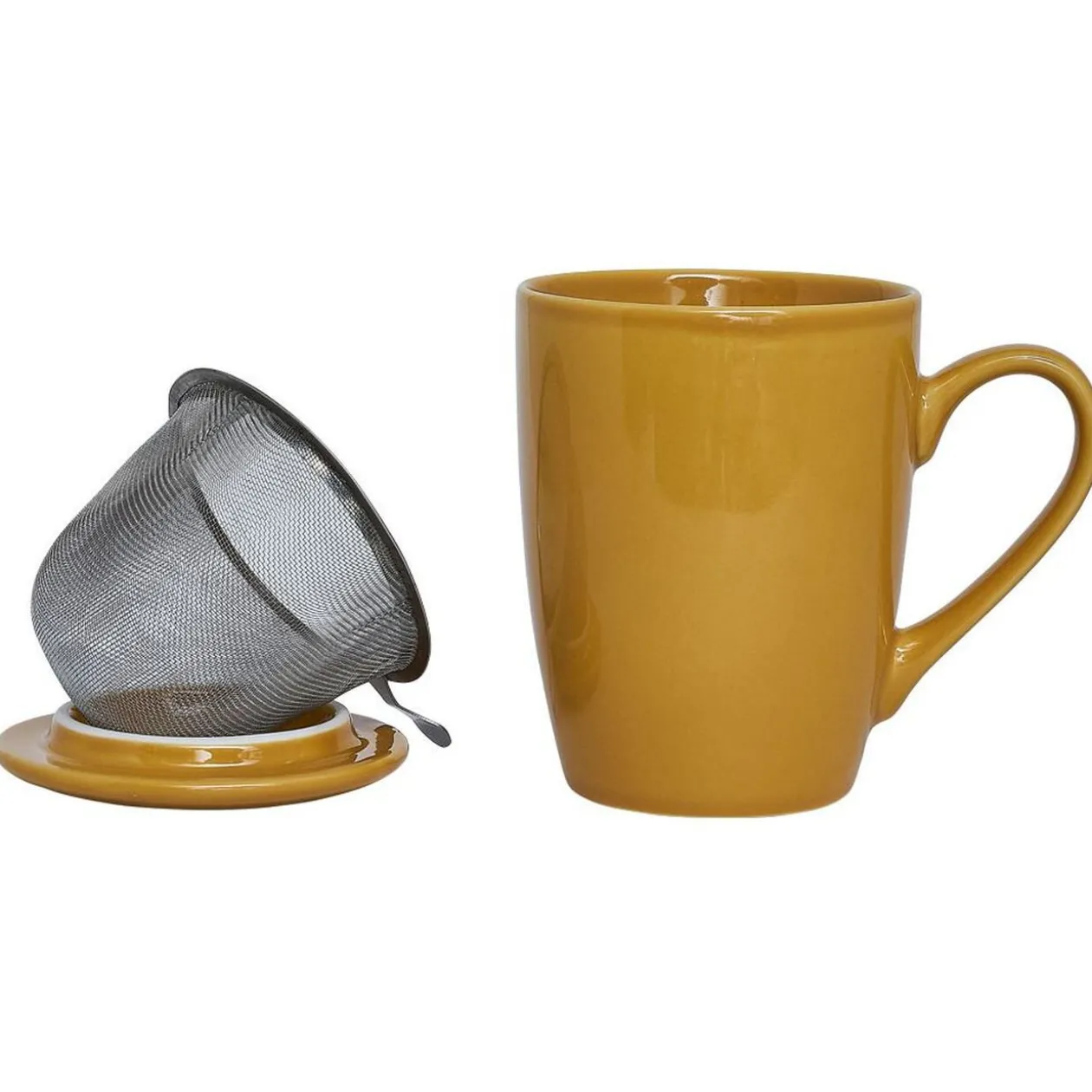 Tisanière avec couvercle en céramique et filtre amovible en inox.