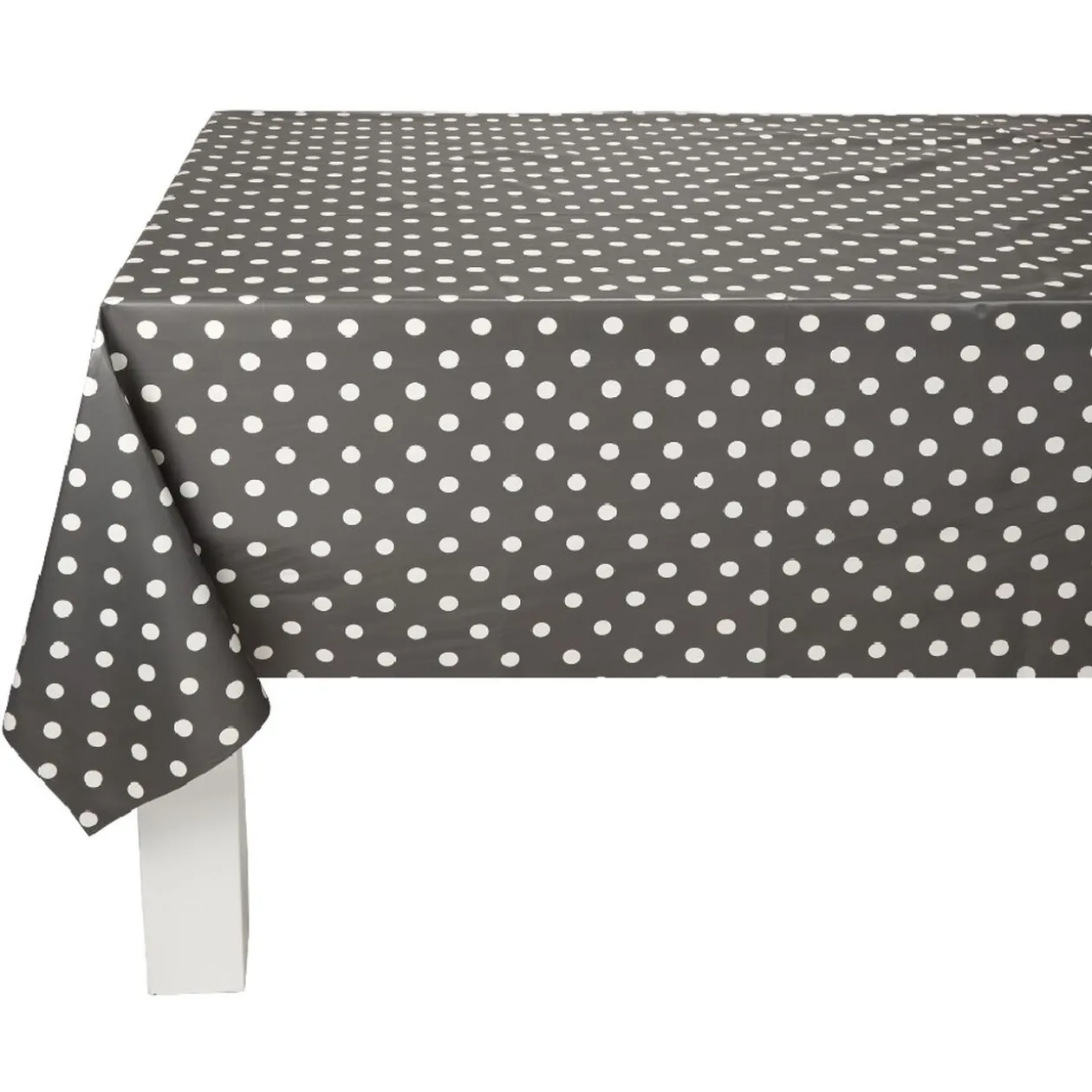 Toile cirée au mètre grise à pois.