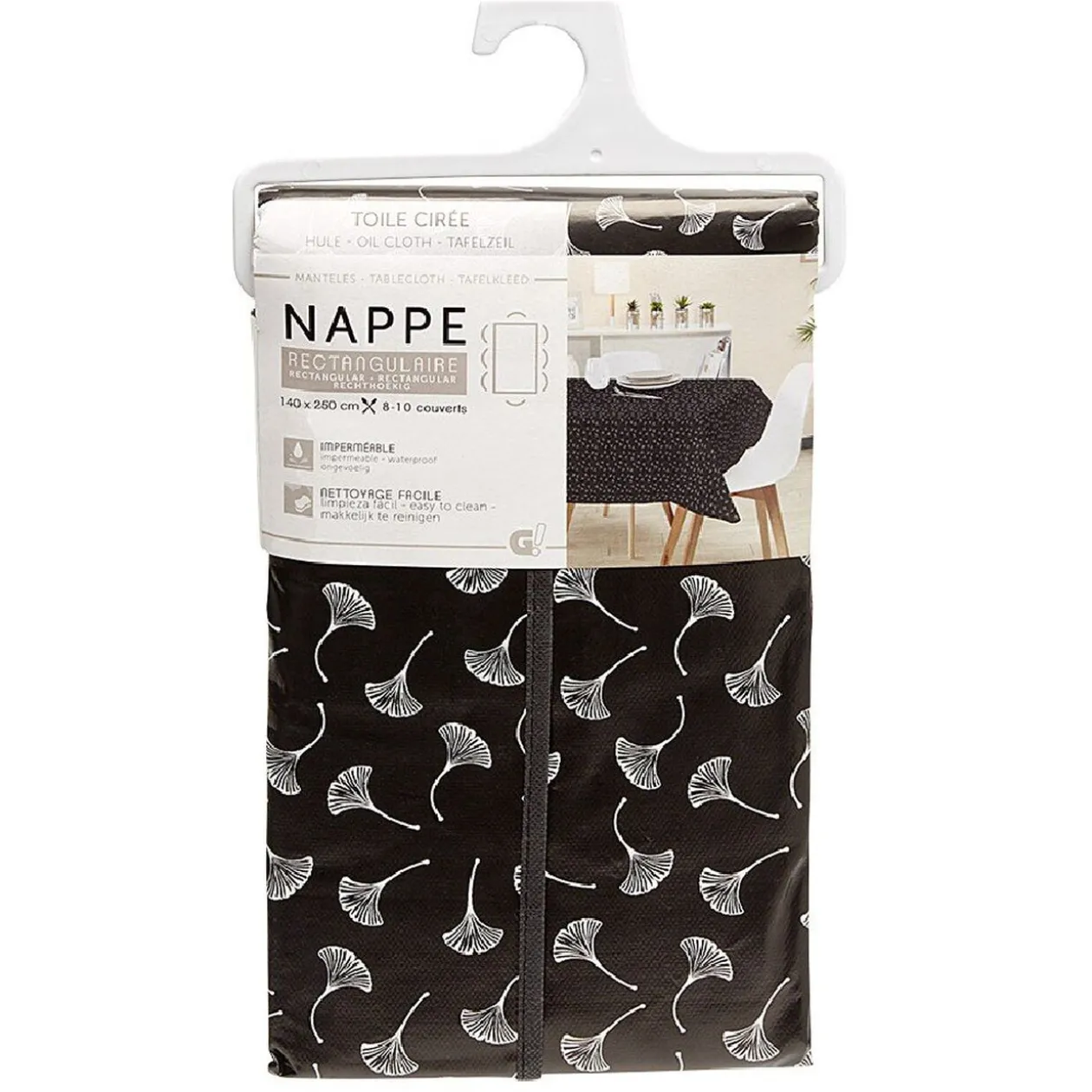 Toile cirée imprimée fleurs blanc et noir en PVC