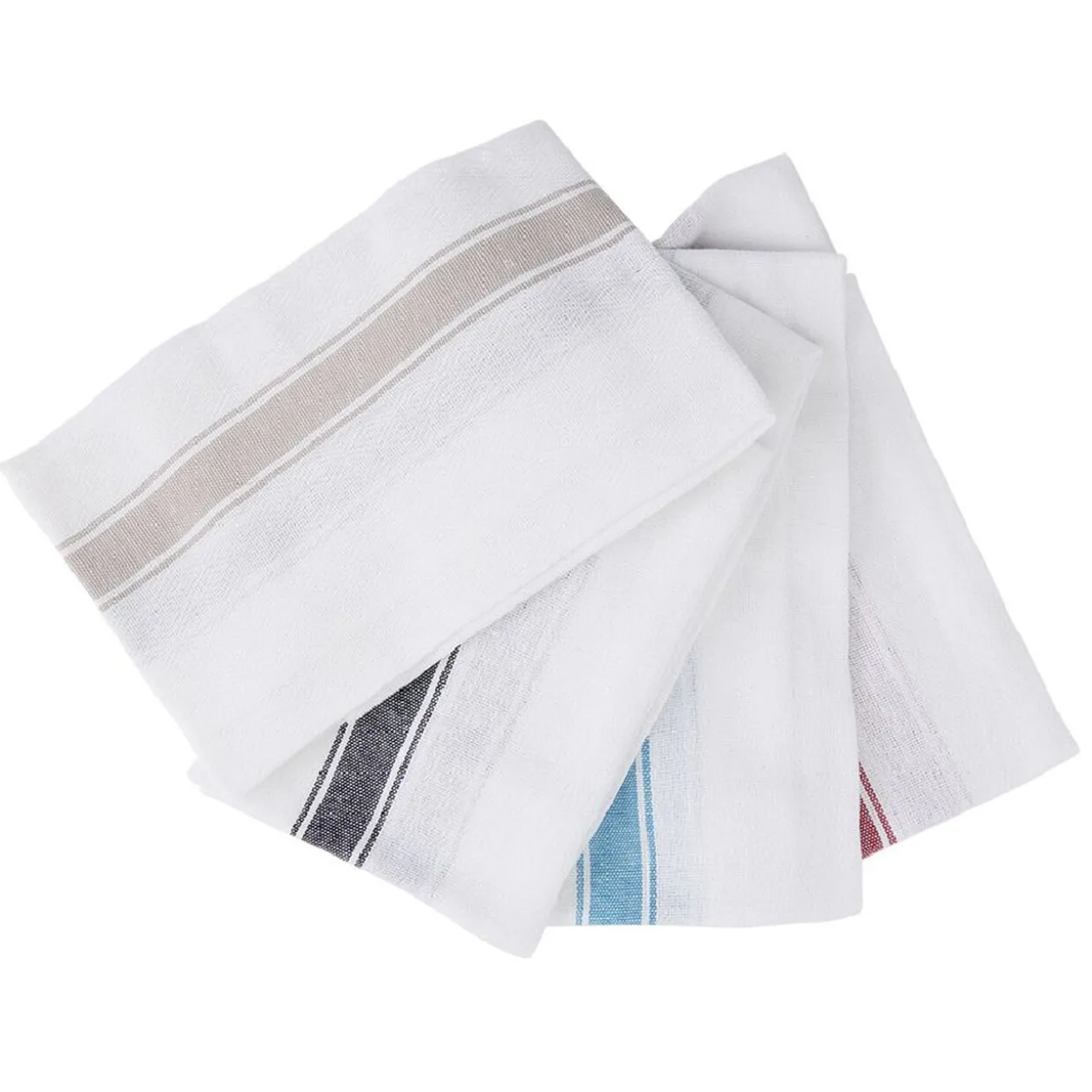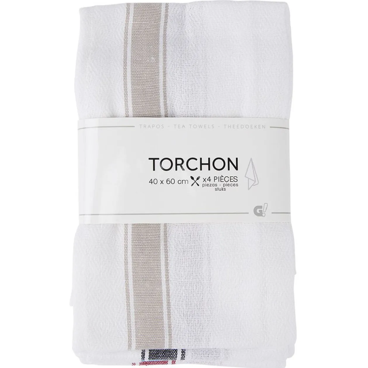 Lot de 4 torchons en coton de différentes couleurs : noir, rouge et beige.