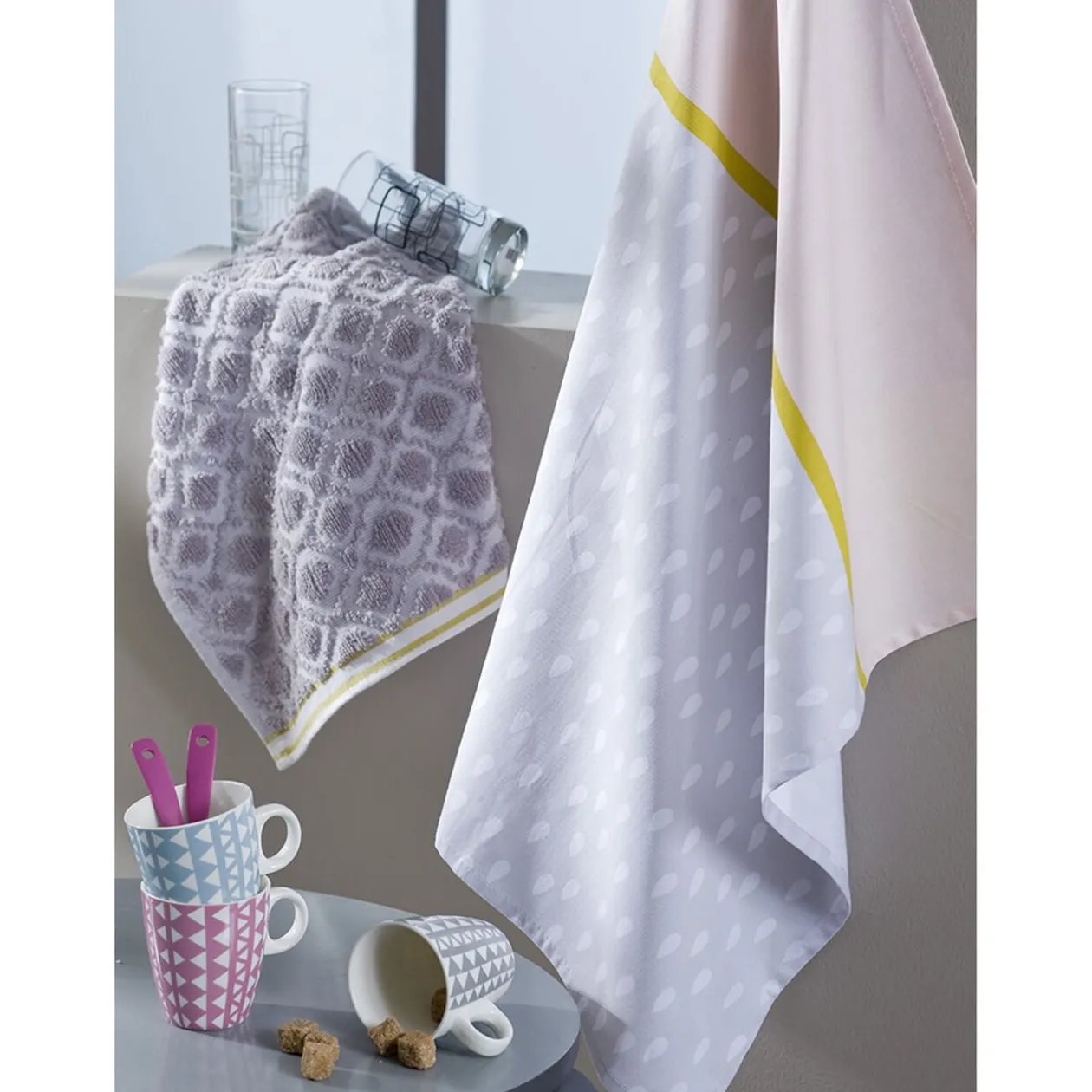 Lot d’un torchon et d’un essuie-main en coton.