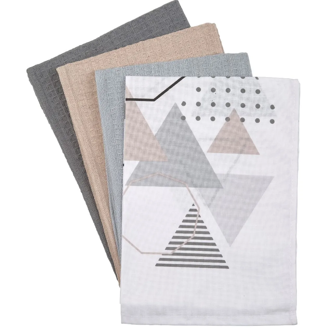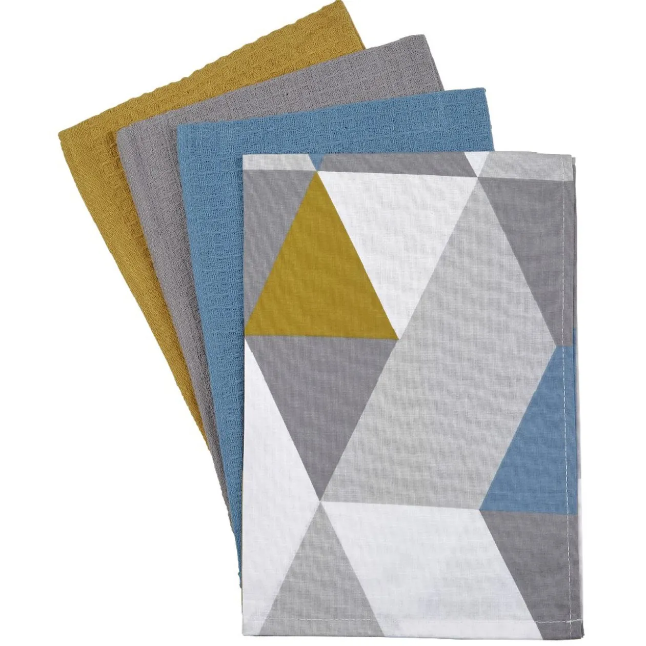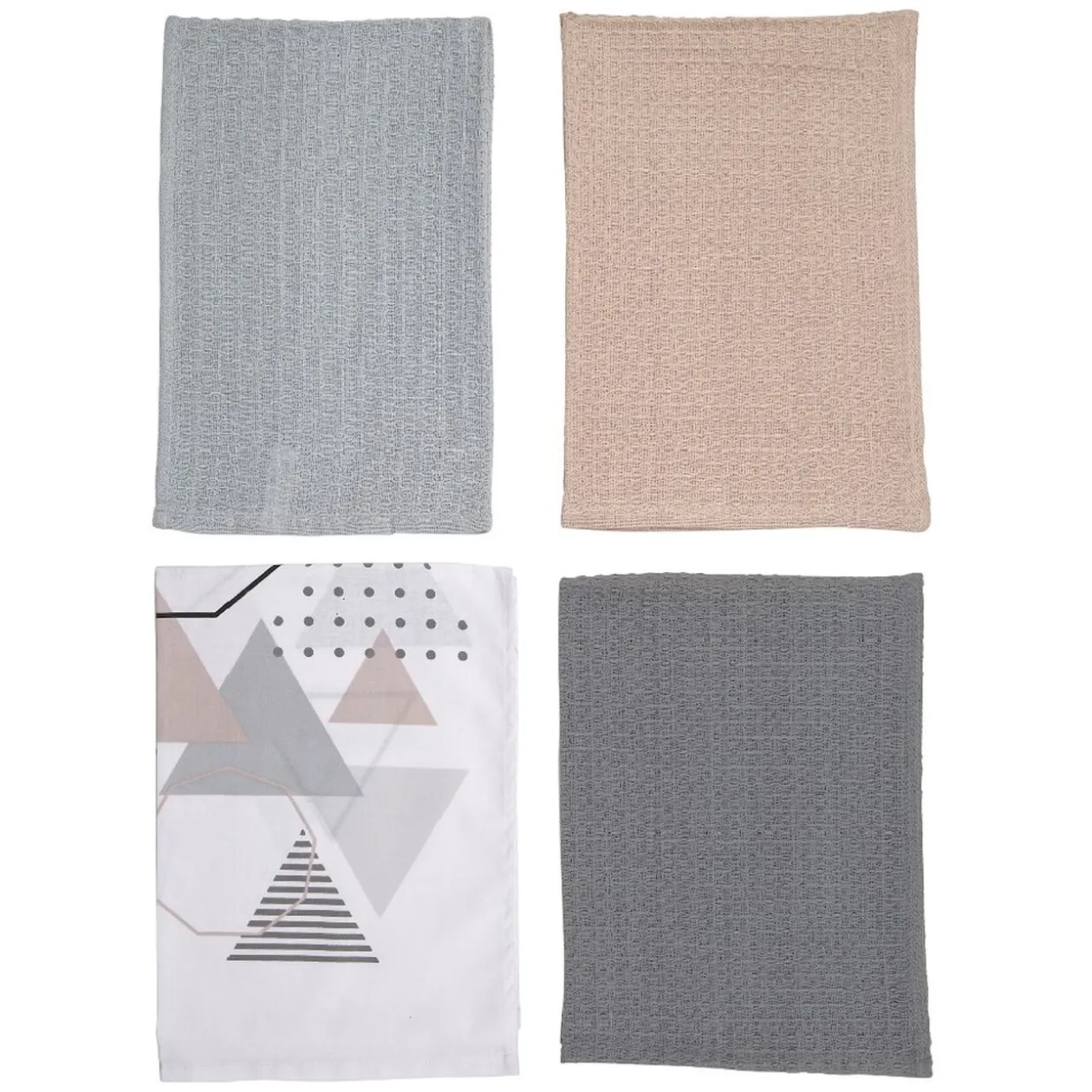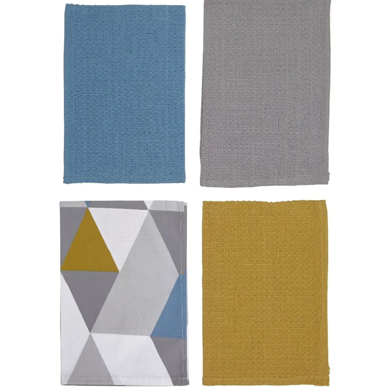 Lot de 4 torchons nid d’abeille dont 1 imprimé et 3 unis.