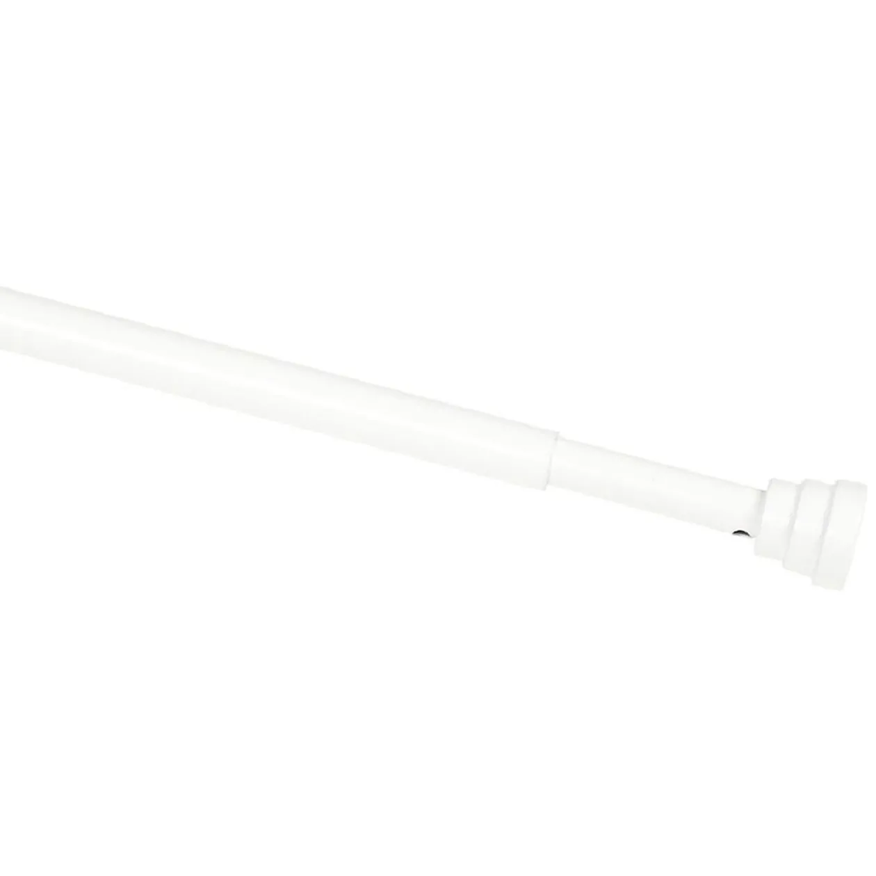 Barre extensible pour vitrage de 60 à 80 cm avec embout forme toupie en aluminium blanc.