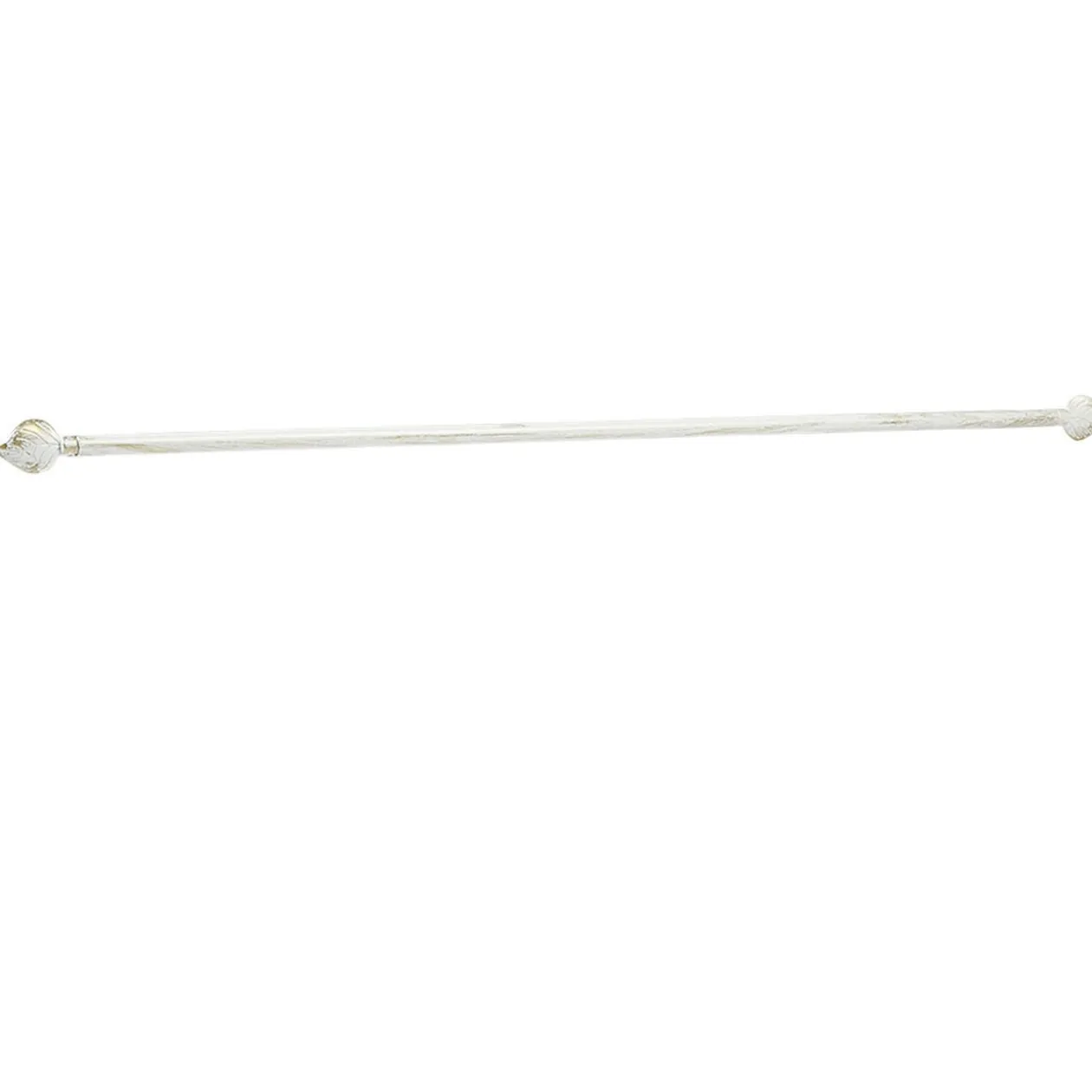 Cette tringle avec embouts en forme de feuille en métal blanc vieilli est extensible de 80 à 110 cm. Idéal pour fixer avec élégance vos vitrages et petits rideaux.