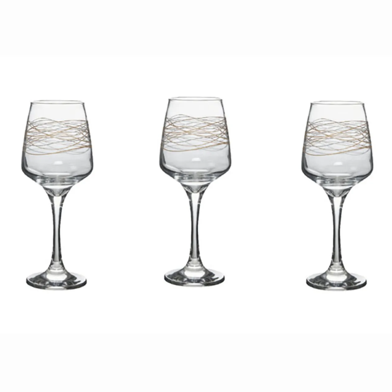 3 jolis verres à pieds d’une contenance de 33 cl motif spirale couleur ocre et blanc.