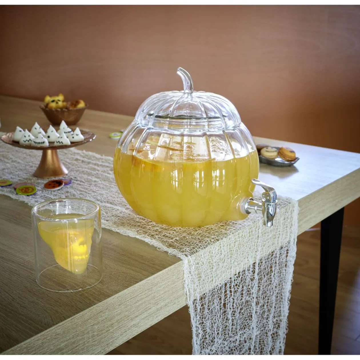 Verre transparent à double paroi design tête de mort. Terriblement original à l’occasion de Halloween !