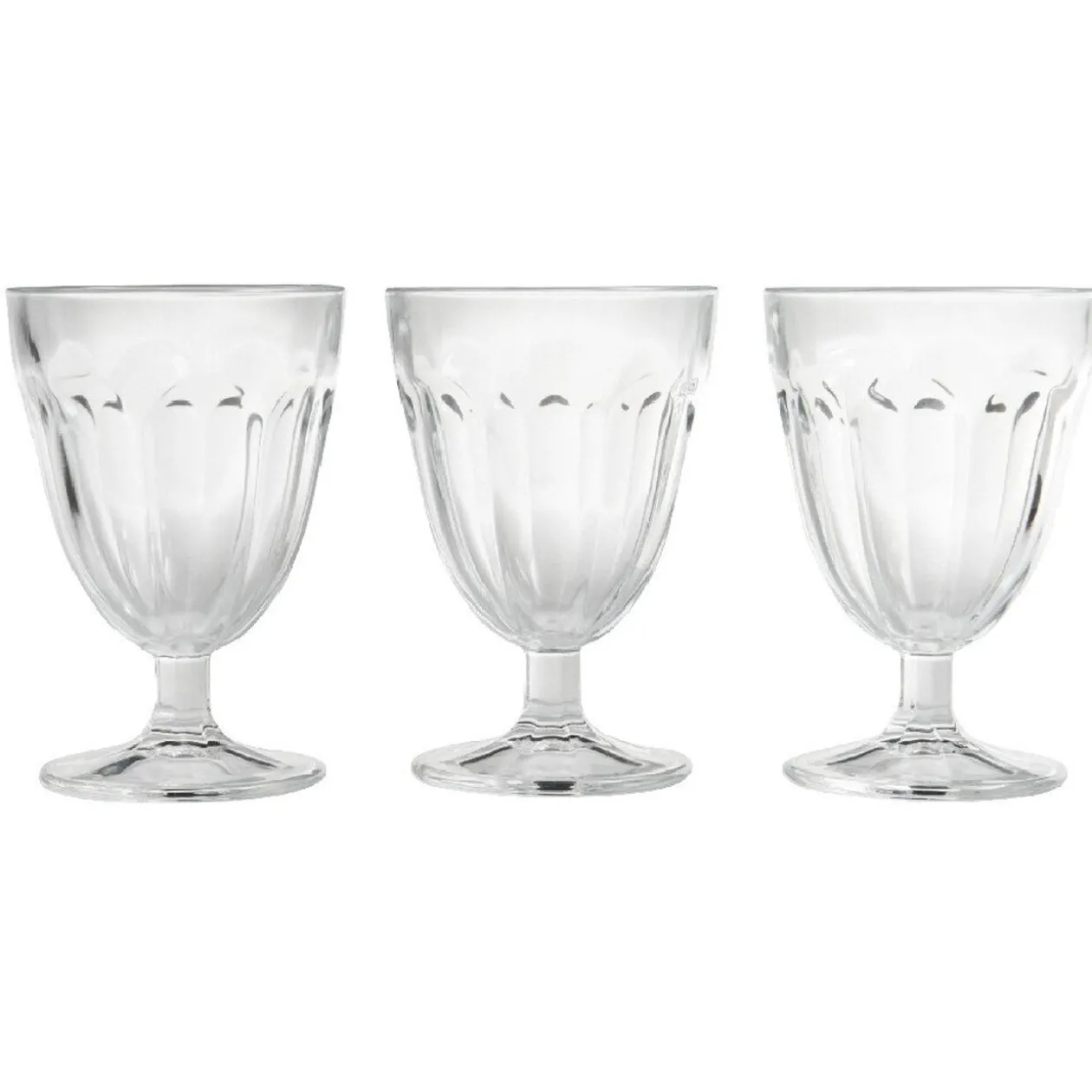 Lot de 3 verres à pied transparents d’une contenance de 21 cl.