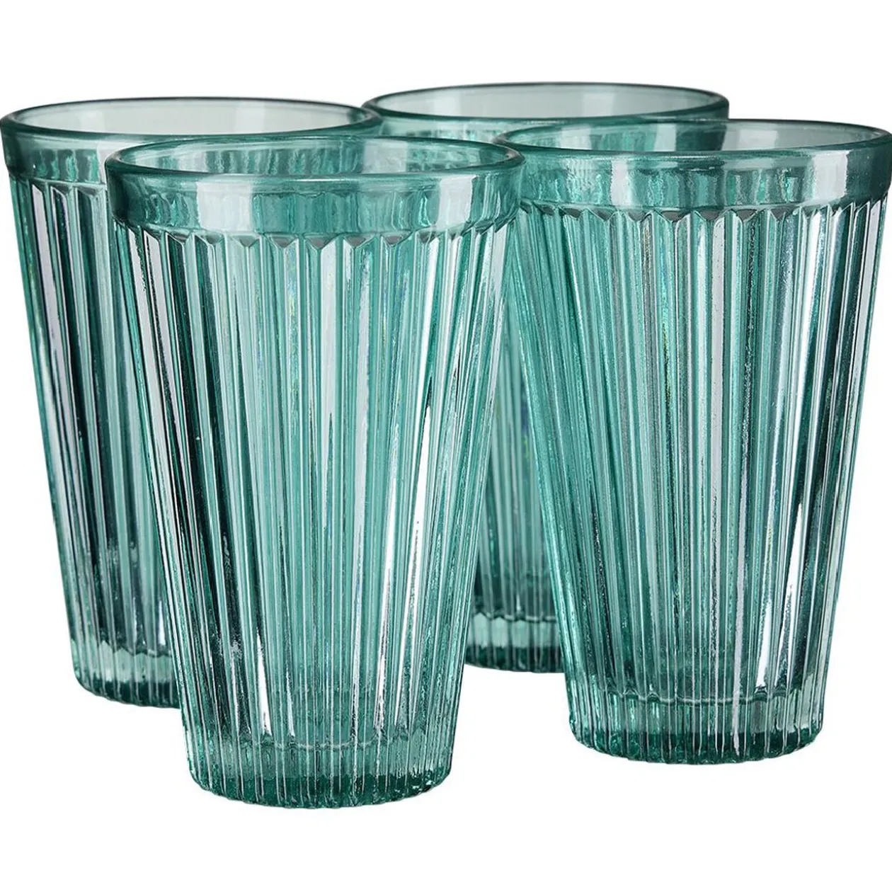 Lot de 4 verres au design strié bleu transparent d’une contenance de 30 cl.