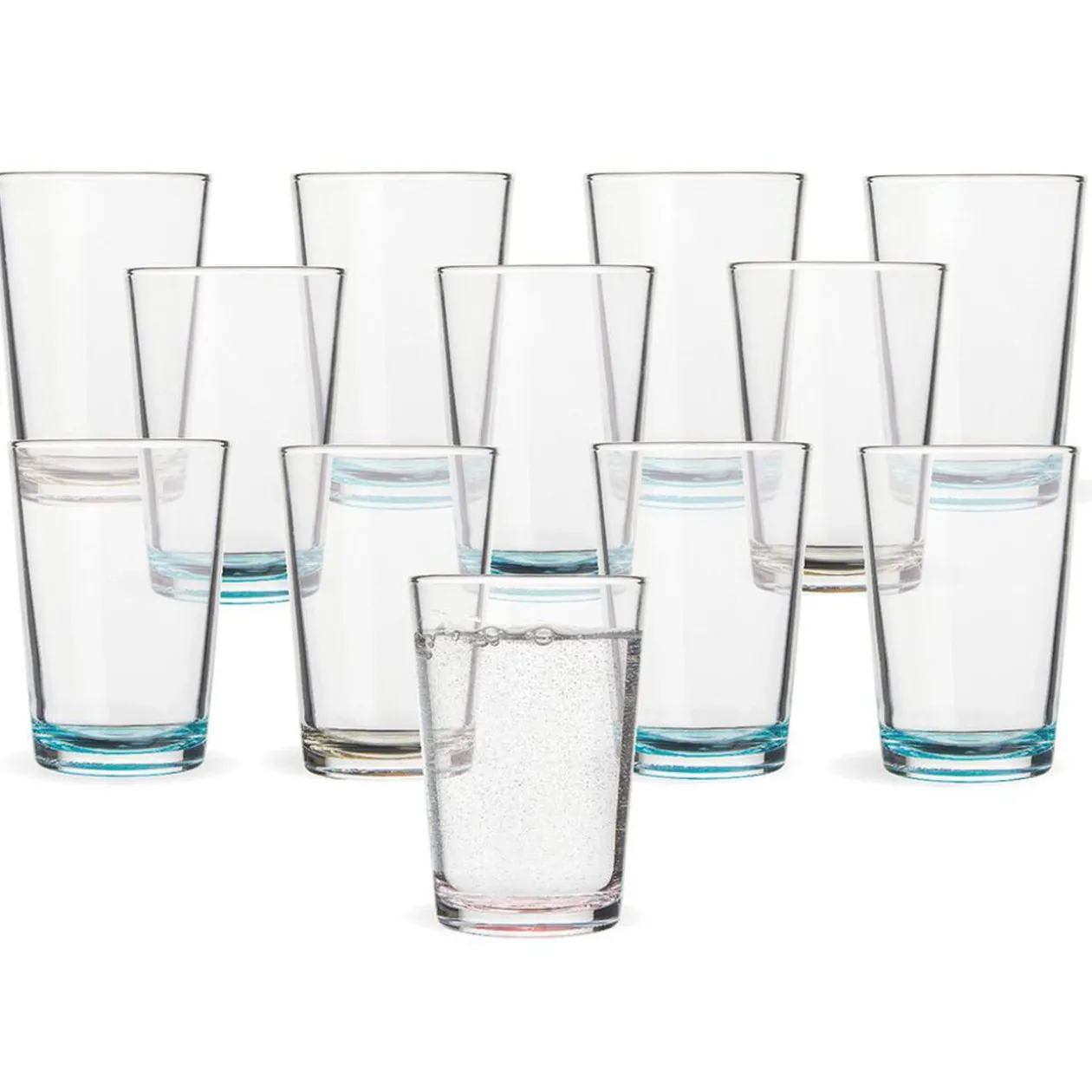 Lot de 12 verres transparents à fond coloré pour eau, jus de fruits et cocktails.