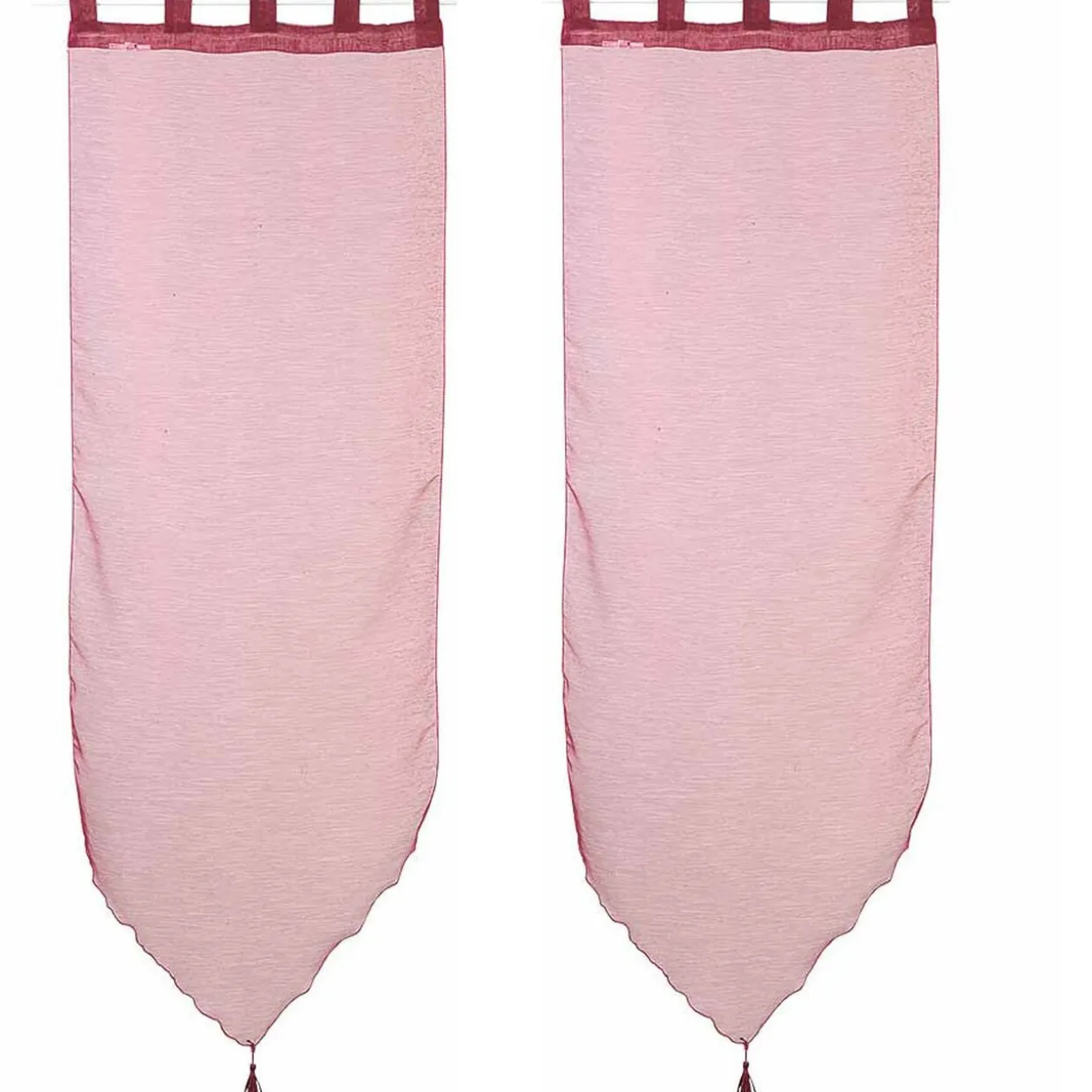 Habillez élégamment votre intérieur avec ces jolis vitrages à 5 pattes de couleur prune et en forme de pointe sur le bas du vitrage décoré d’un pompon. Ils sauront apporter une touche chic et douce à la fois !