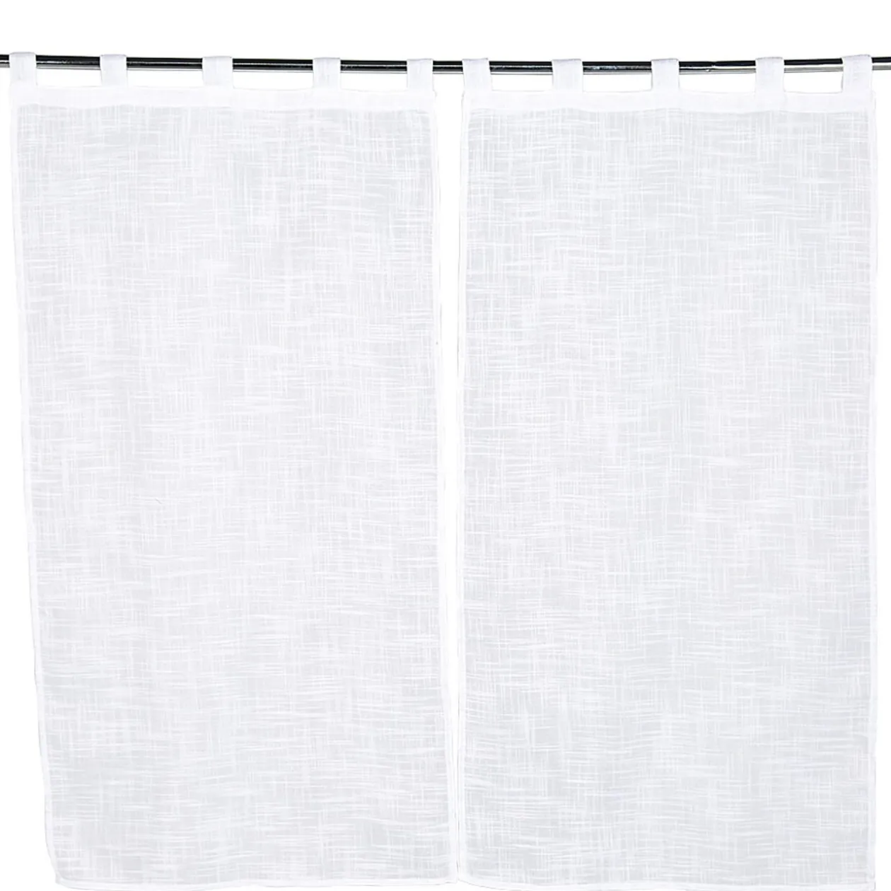 Cette paire de vitrages droits à passants effet lin de couleur blanche sera idéale pour habiller vos fenêtres sans vous couper totalement du jour.